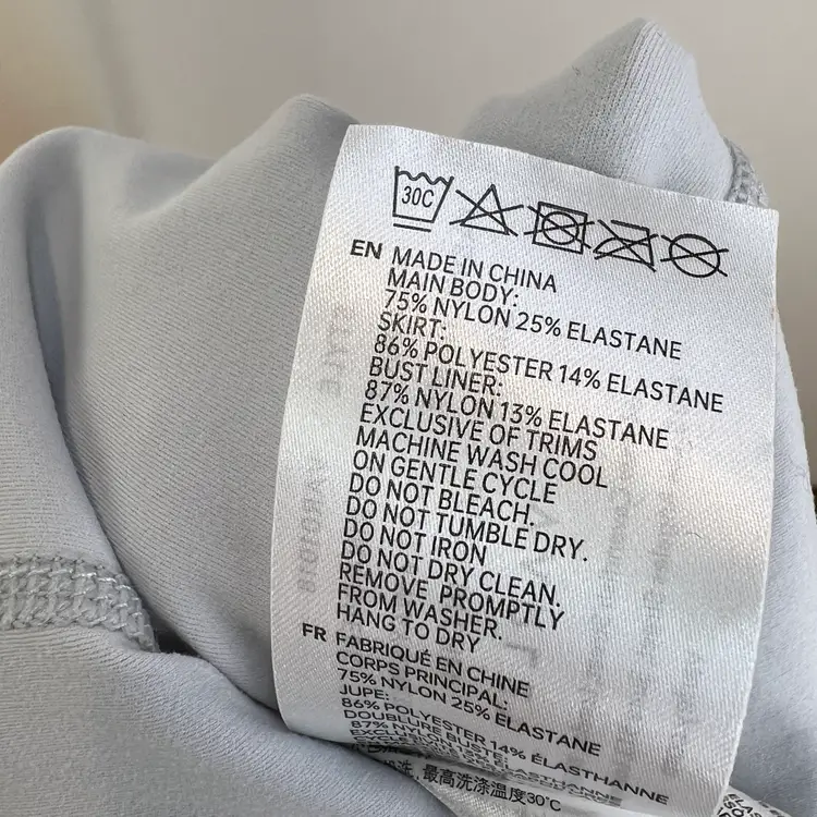 Size Large New with tags, unused, no flaws or odors. Built in shelf bra with removable padding attached, bike short lining, pull on styling, designed for a close fit, square neckline, crisscross strap back with cut out and reflective logo at the back.