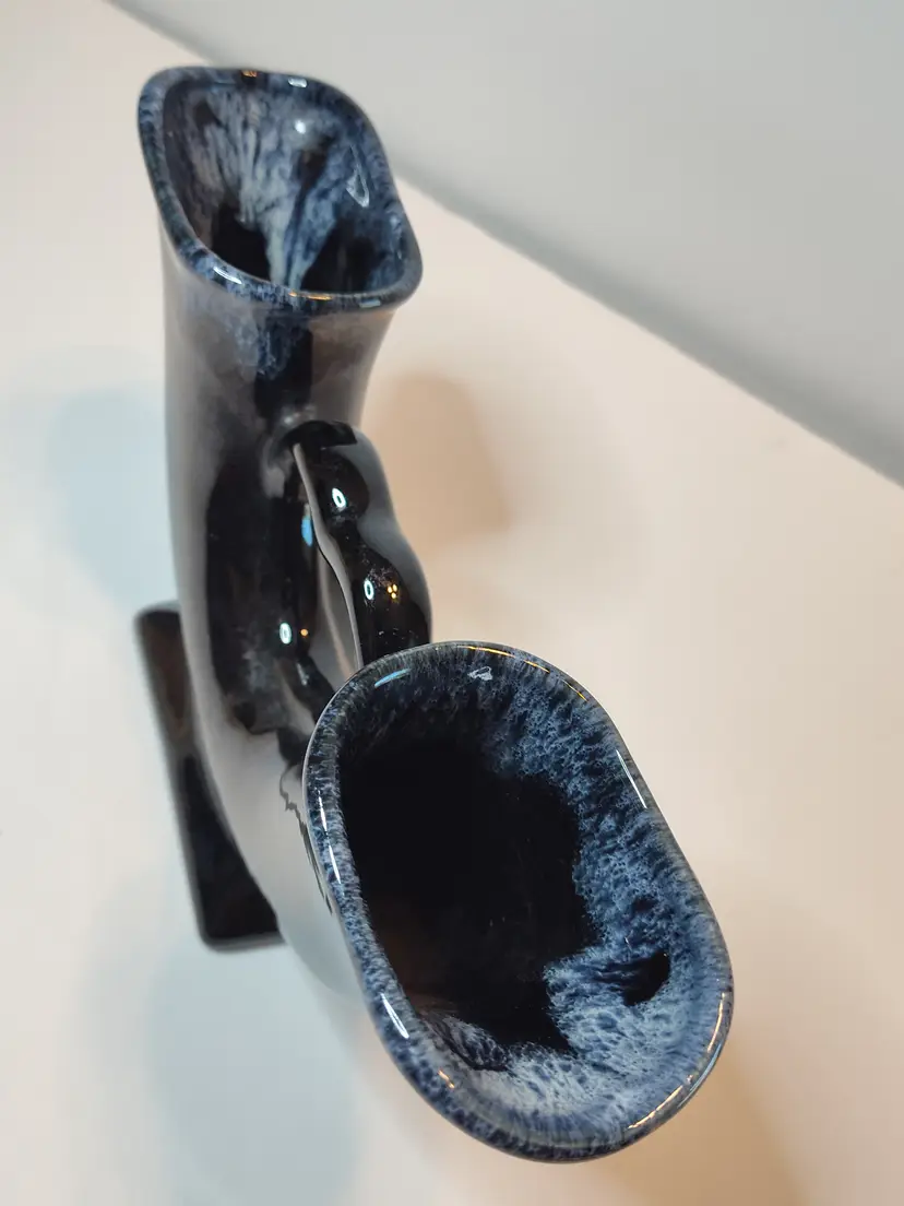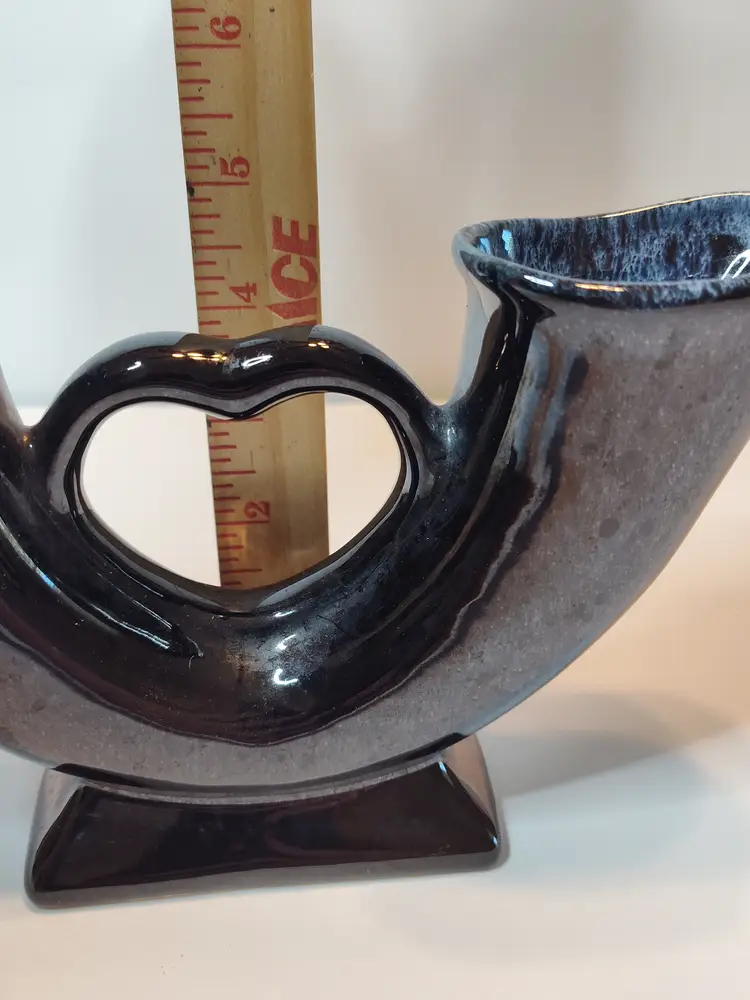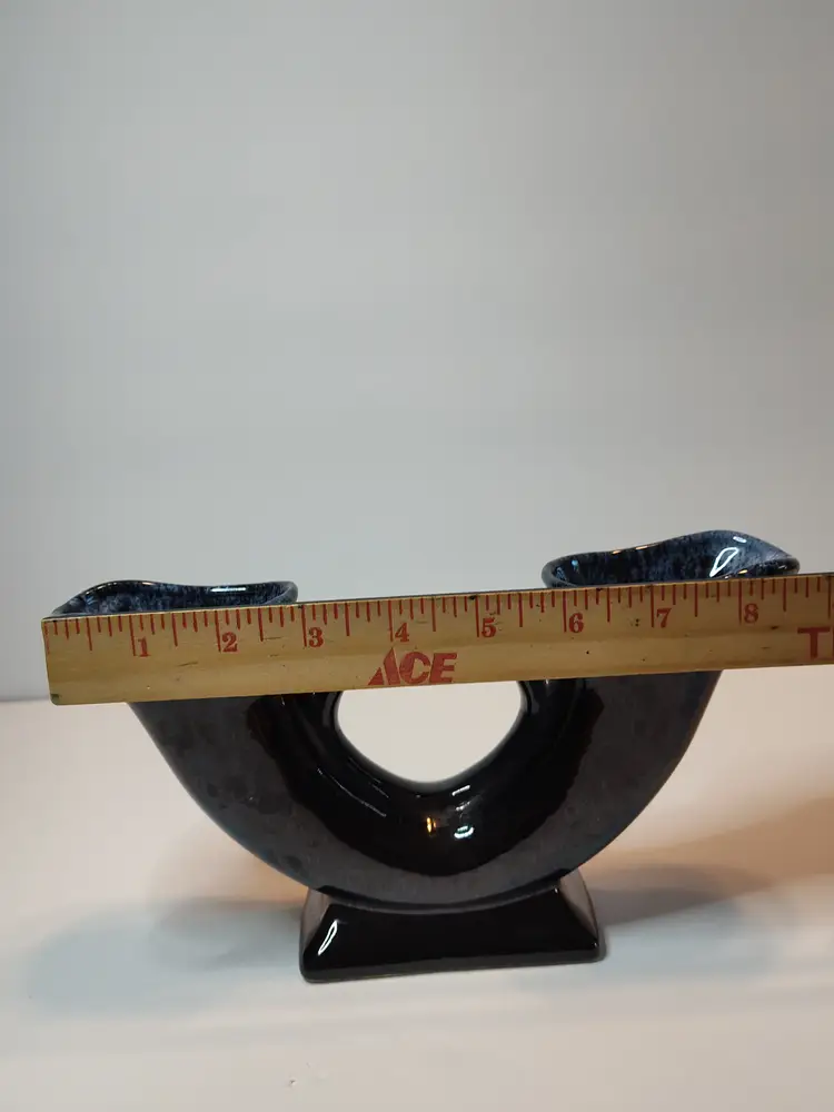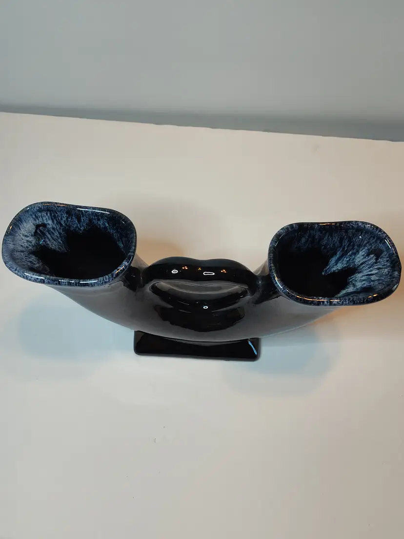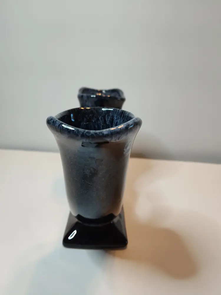 Vintage black & blue Van Briggle pottery double spout wedding vase.