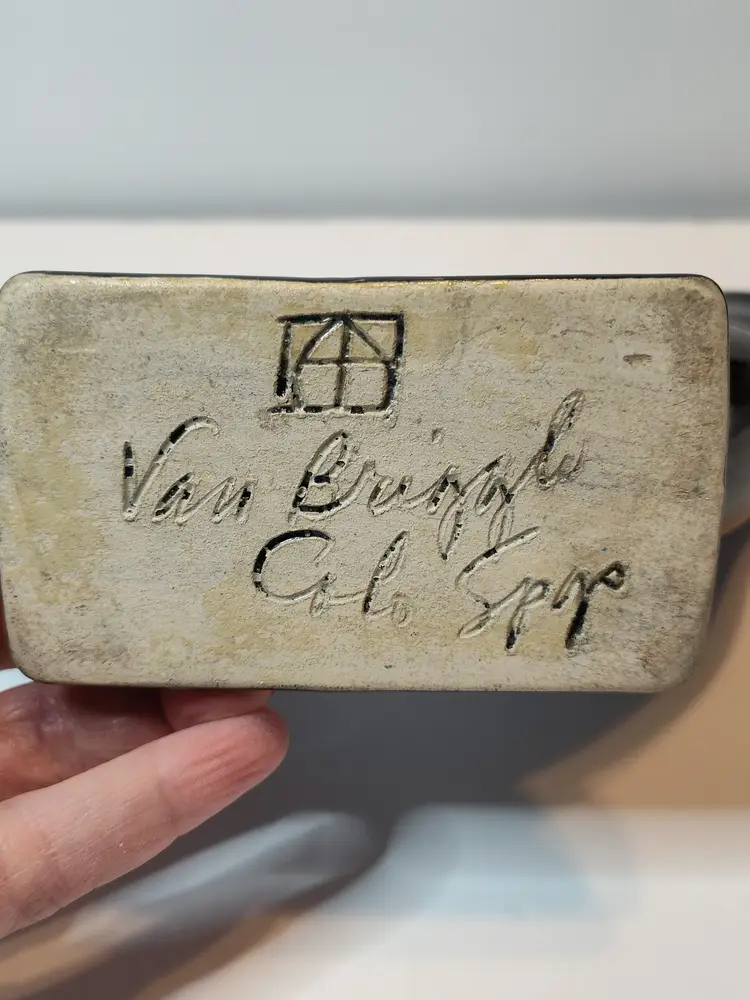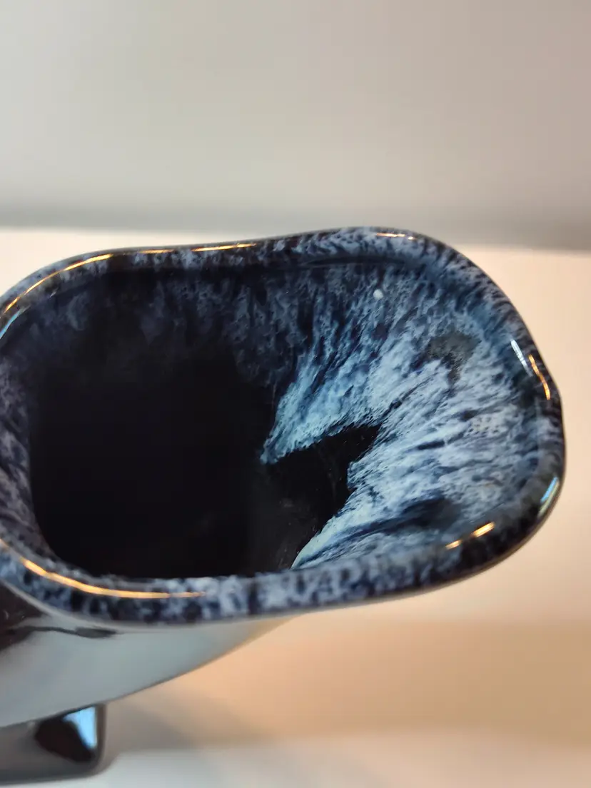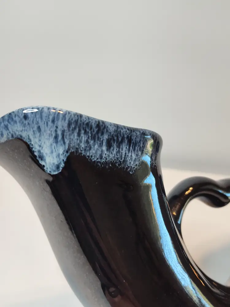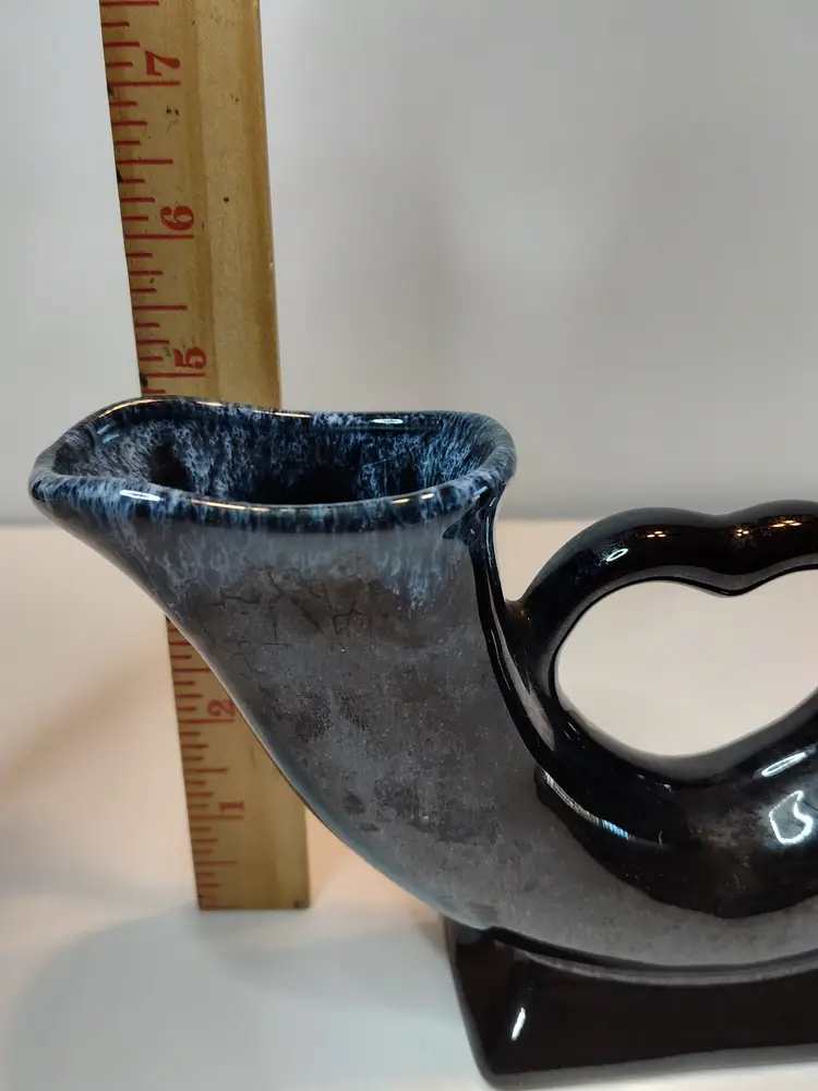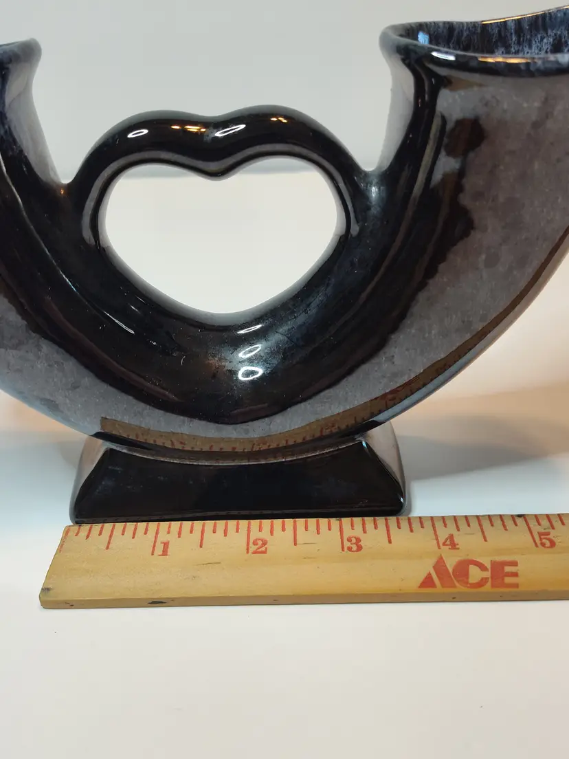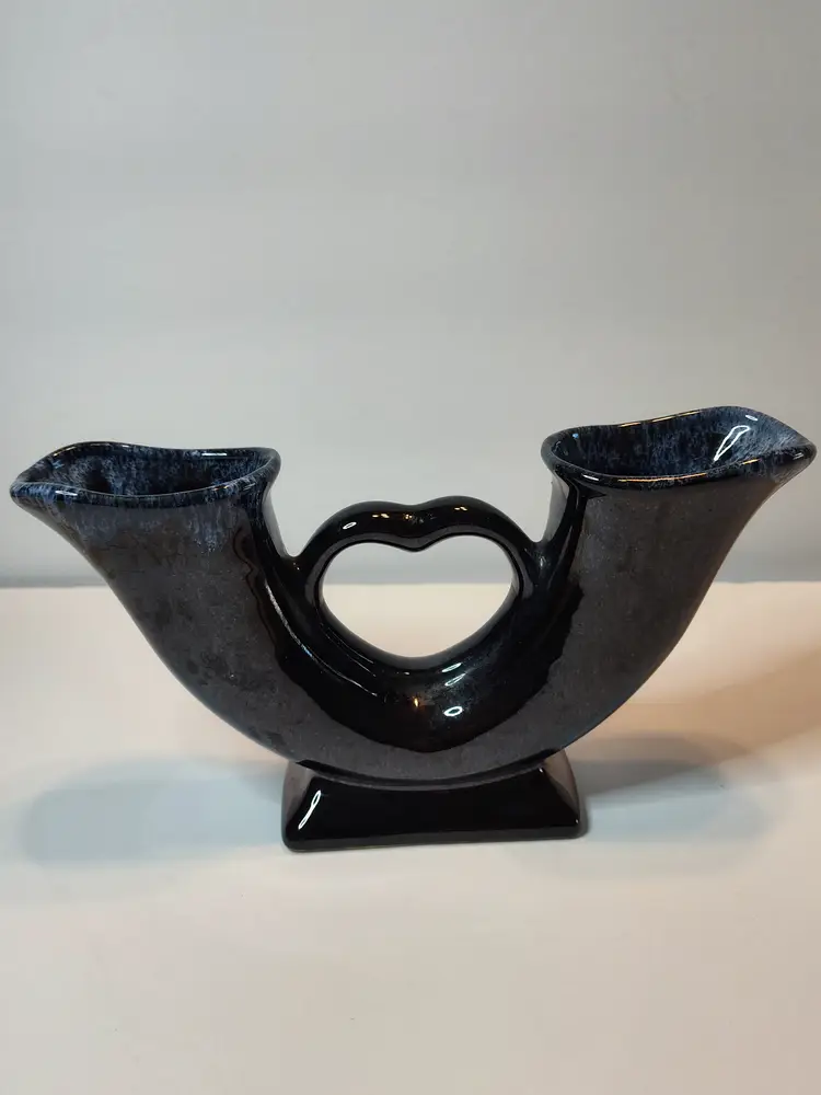 Vintage black & blue Van Briggle pottery double spout wedding vase.