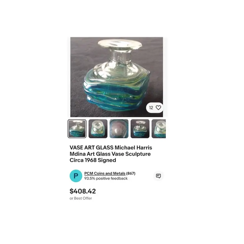 Michael Harris (1933–1994) was a highly influential English glass artist and a pioneer of the British studio glass movement. He is primarily known for founding two major studio glass companies: Mdina Glass in Malta and Isle of Wight Studio Glass in England. Mdina Glass (Malta) Established: In 1968, Harris co-founded Mdina Glass with Eric Dobson on the island of Malta. The company was an instant success despite Malta's lack of glass-making history. Artistic style: The glass produced here had a distinctive, free-formed style inspired by the colors and textures of the island's sea, earth, and sand. Departure: In 1972, Harris and his wife left Mdina Glass to return to the UK. Isle of Wight Studio Glass (UK) Established: In 1973, Harris and his wife, Elizabeth, founded Isle of Wight Studio Glass. The studio was located in a picturesque setting in St. Lawrence.