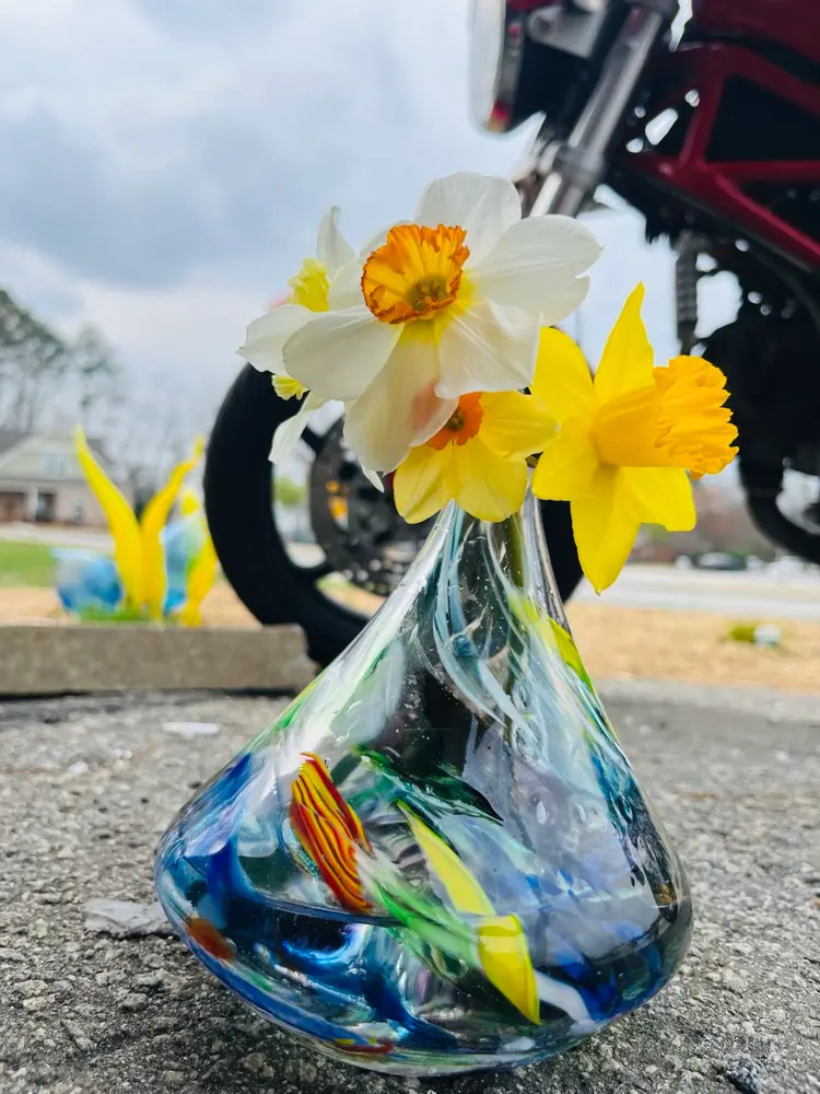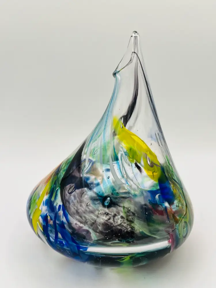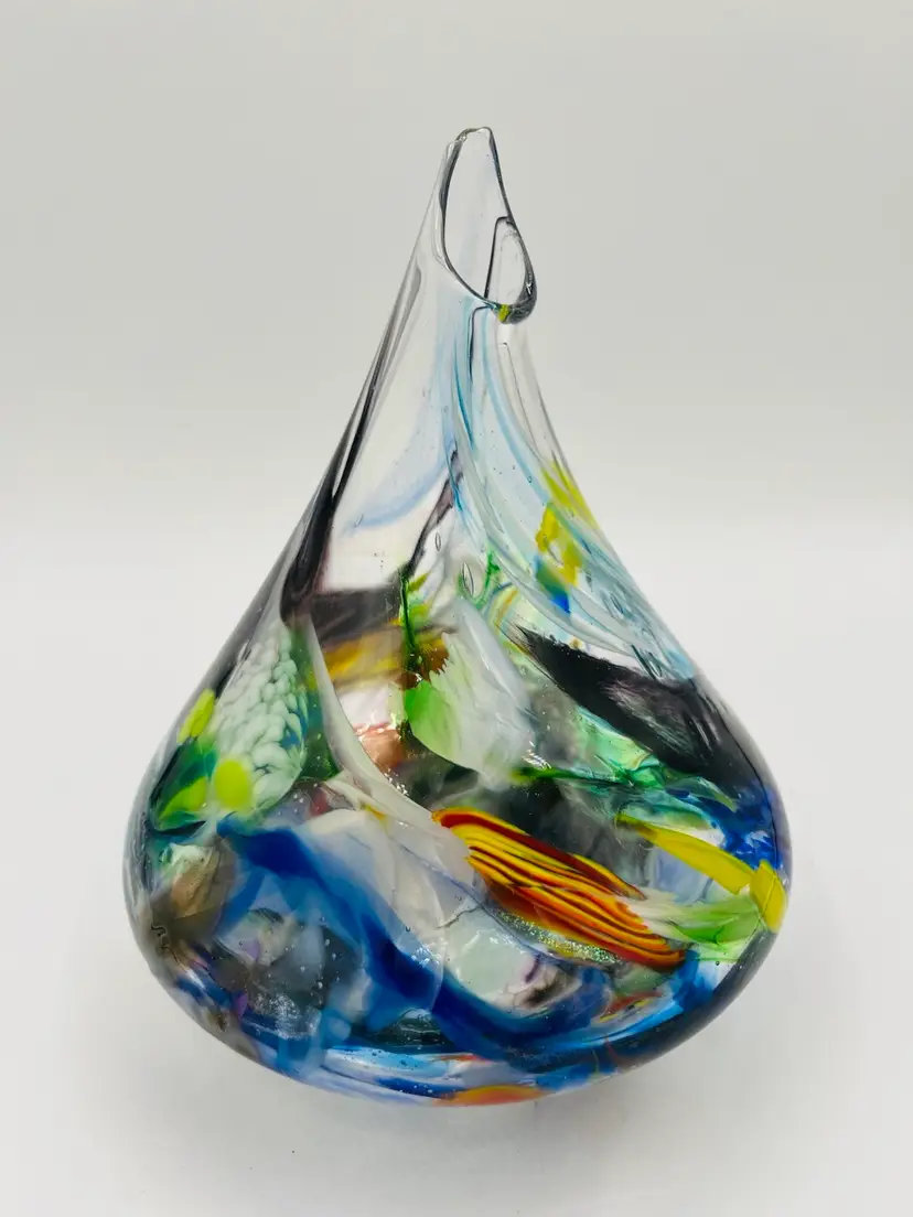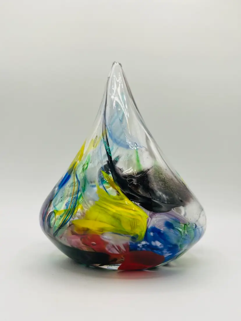 This vase will complement any flower arrangement you add to it. Designed from an array of colored and textured glass to create a one of kind piece of art. Part of my colored crushed series. This piece will add light and beauty to any home for the rest of its time. Enjoy!
