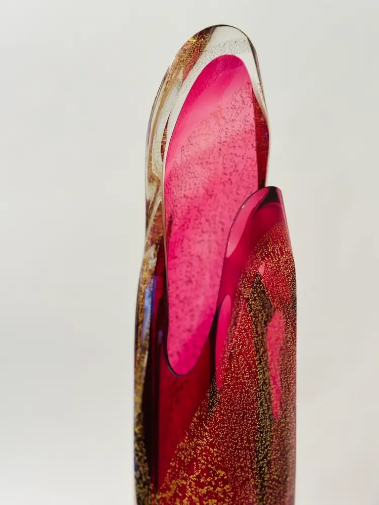 Joseph Becker does not try to dominate and control his glass sculptures by making flowers, animals, or objects. Instead he allows the glass to showcase its unique beauty (in form, line, light, shadow, and depth of color) through extensive grinding and polishing techniques. His art-pieces have been displayed internationally and across the United States: from the Corning Glass Museum (in Corning, NY) to art festivals in St. Louis, Florida, Missouri, and Wisconsin.