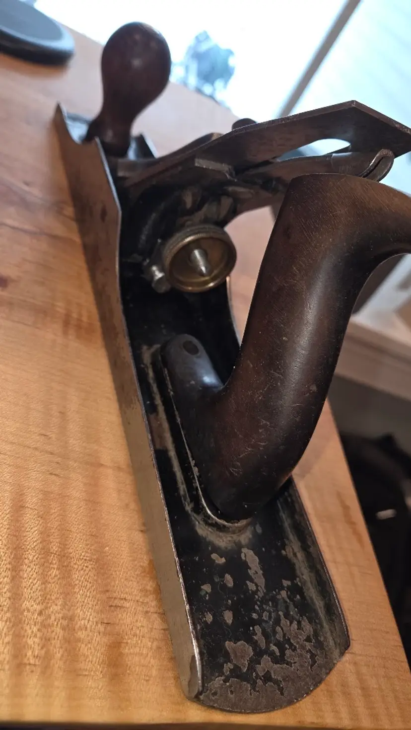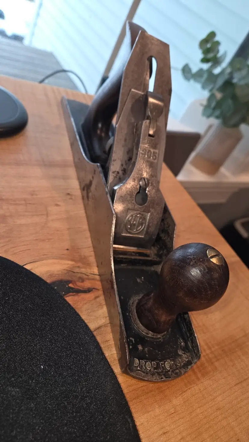 This Vaughan and Bushnell 905 jackplane was made from dropforged steel and was marketed as being indestructible. It was the main competitor to the Stanley Bedrock series as I understand. No cracks around the mouth nor any other damage to speak of. This would make a great user or collectible.