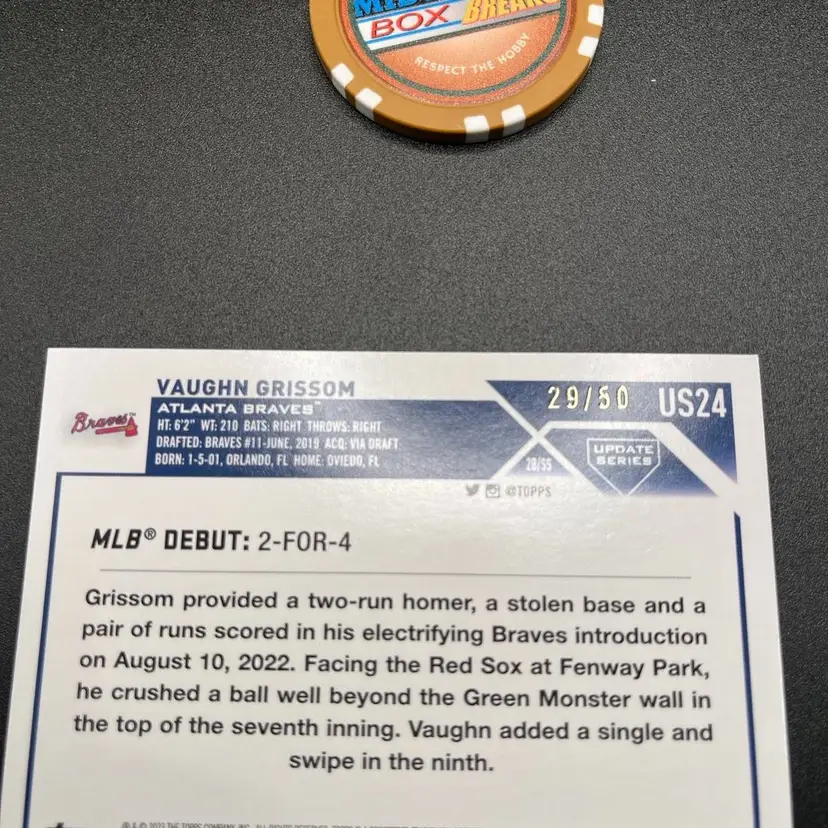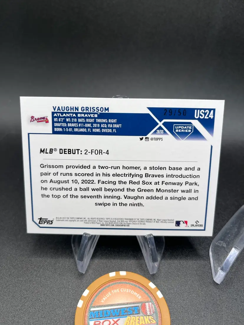 2023 Topps Update Vaughn Grissom rookie debut Fathers Day Parallel # 29/50.