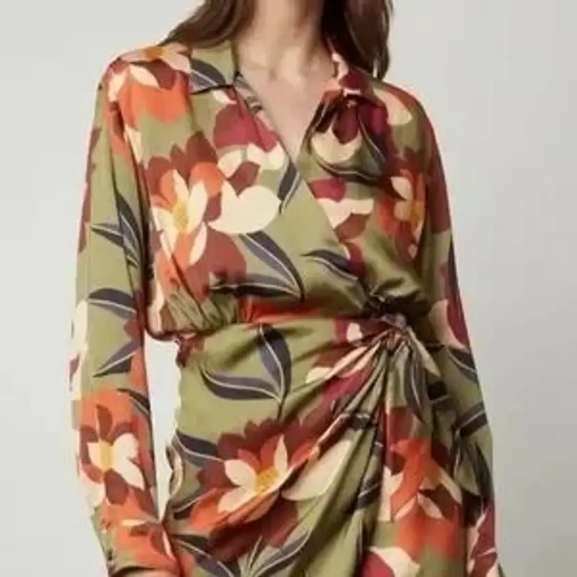 Velvet Janey Printed Satin Dress | Size Medium | As always, items could contain flaws. Disclosed as best as possible. Some flaws could be missed.
