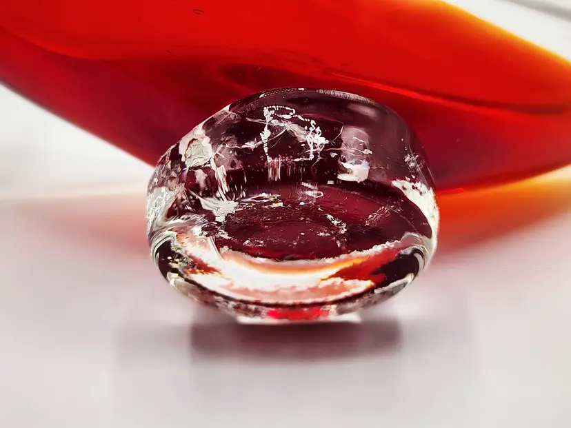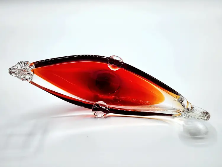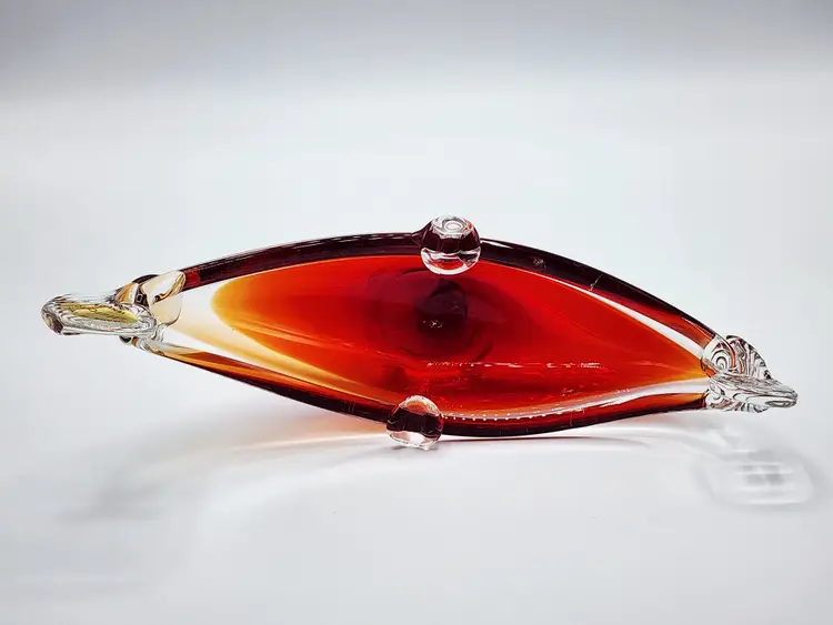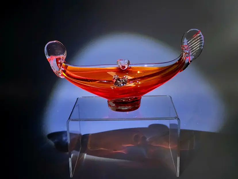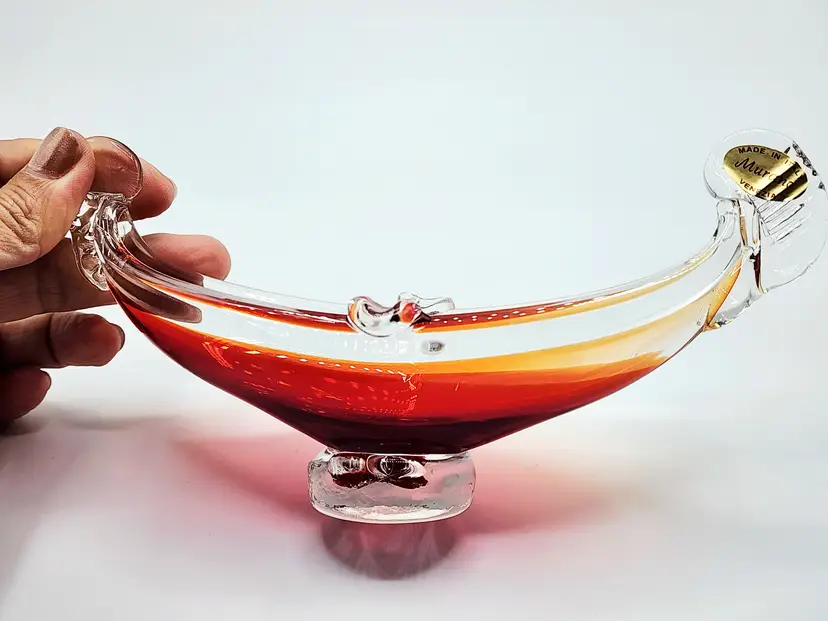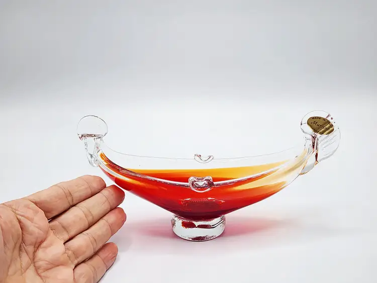 Vintage Venetian Glass gondola Sculpture - red & clear glass, cadmium glow, handblown. Very good condition. Measures: 7 1/2" long, 3 1/2" tall.
