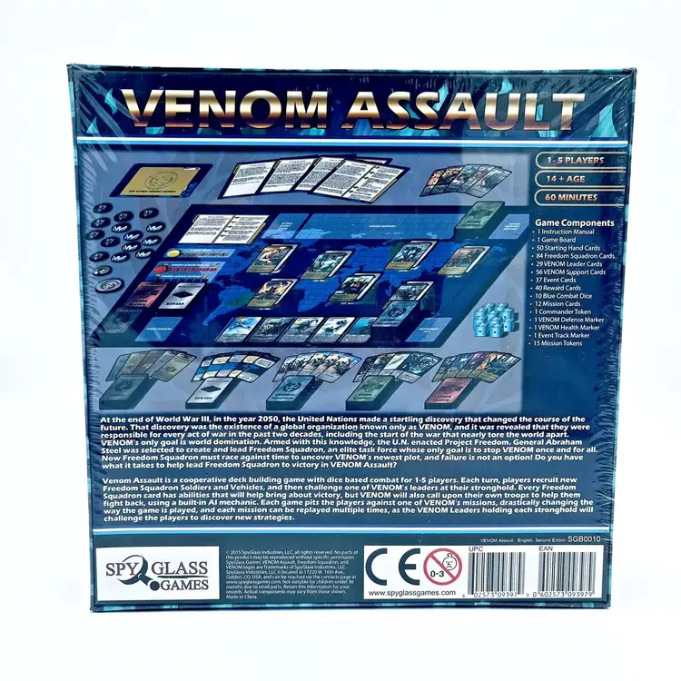 VENOM Assault is a cooperative game for 1-5 players. In VENOM Assault, players are tasked by the United Nations to thwart a global organization on the edge of taking over the world, known only as VENOM. After discovering VENOM's evil plan, the U.N. has called for the most elite soldiers of the world to gather together, work as a squadron, and stop their evil plans. As the U.N.'s greatest tacticians, players assemble their squadrons from the soldiers and vehicles that arrive from around the world in order to strengthen their forces!