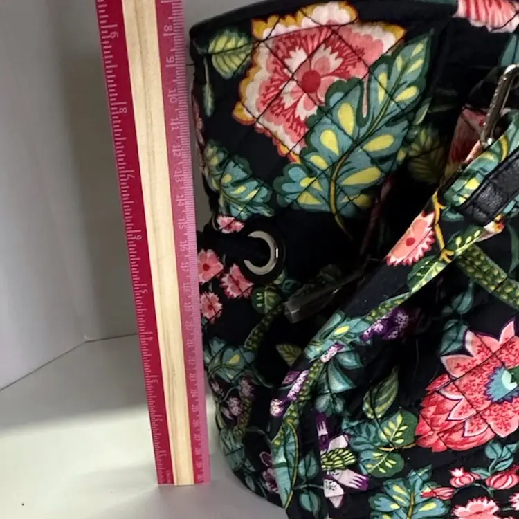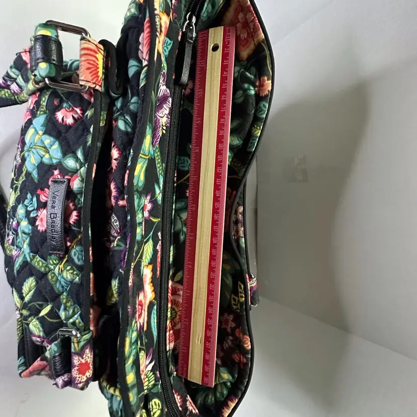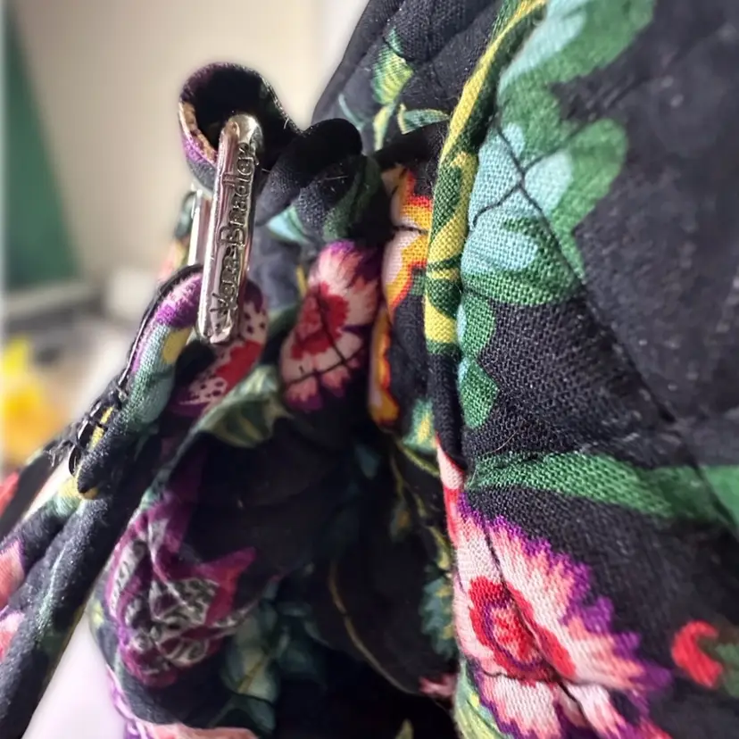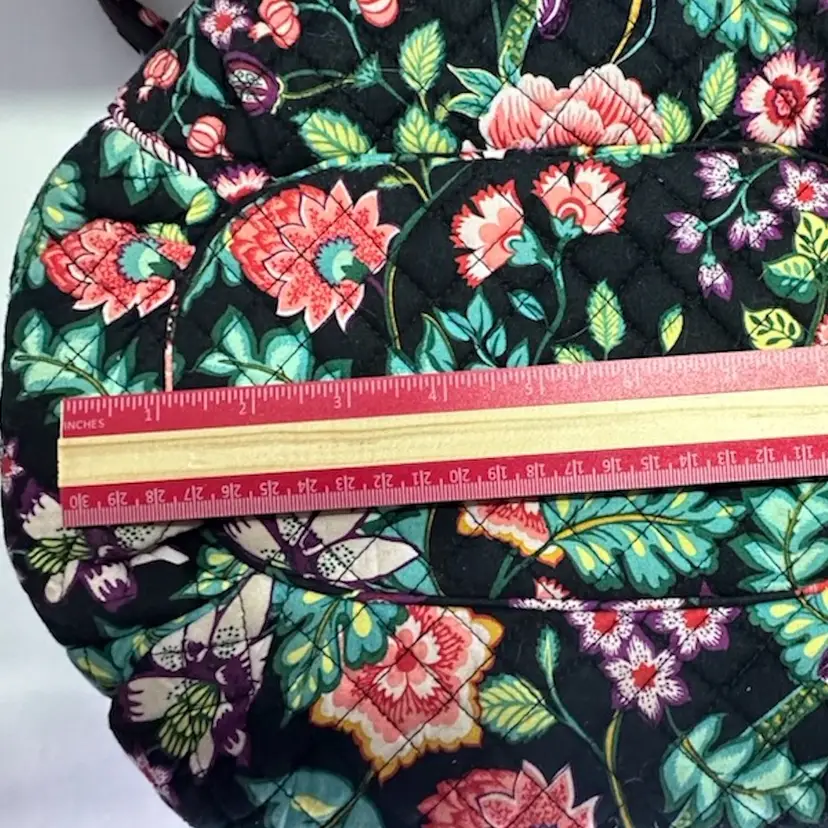 VERA BRADLEY Hadley EAST WEST Tote VINES FLORAL Retired RARE HTF Black Teal - Preowned lightly used- great condition See photos for size comparisons and details Photos may show lint - difficult to prevent