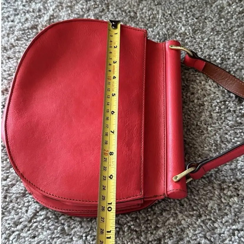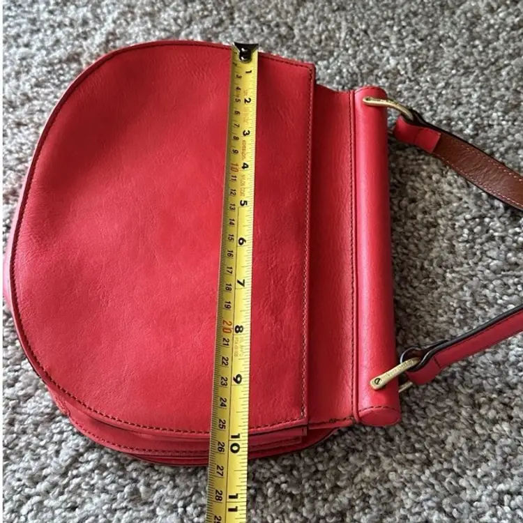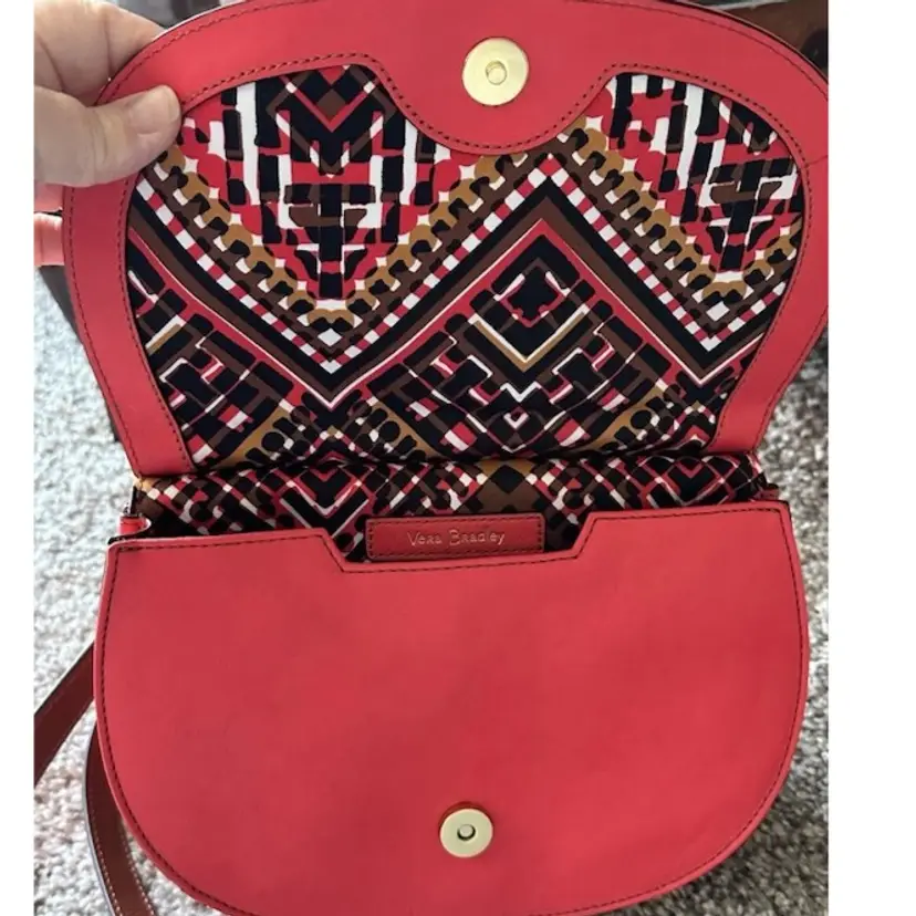 The bag features a crossbody strap that allows for hands-free wear and a red exterior color that adds a pop of color to any outfit. The Vera Sidesaddle model is designed to fit comfortably over your shoulder and the bag is perfect for any occasion. Whether you're running errands or heading out for a night on the town, this bag is sure to turn heads.
