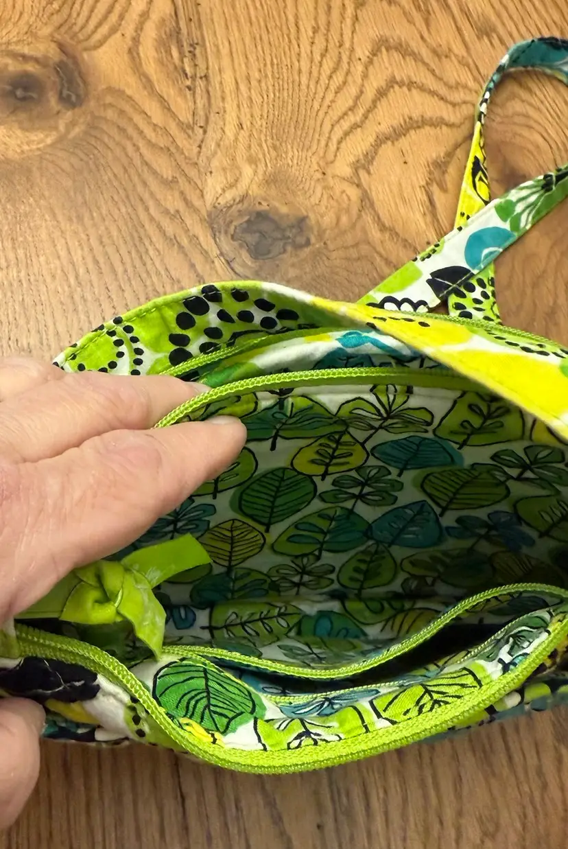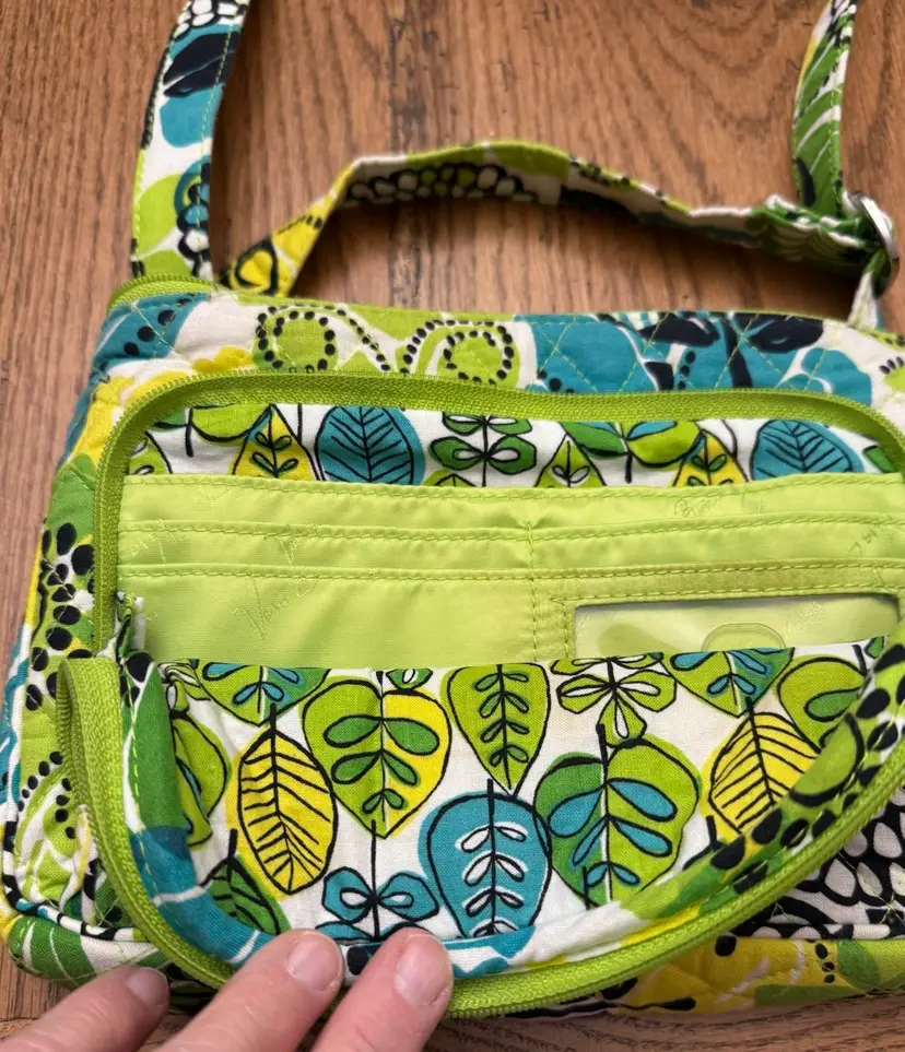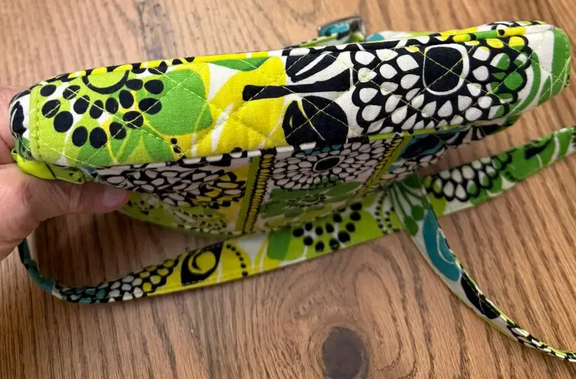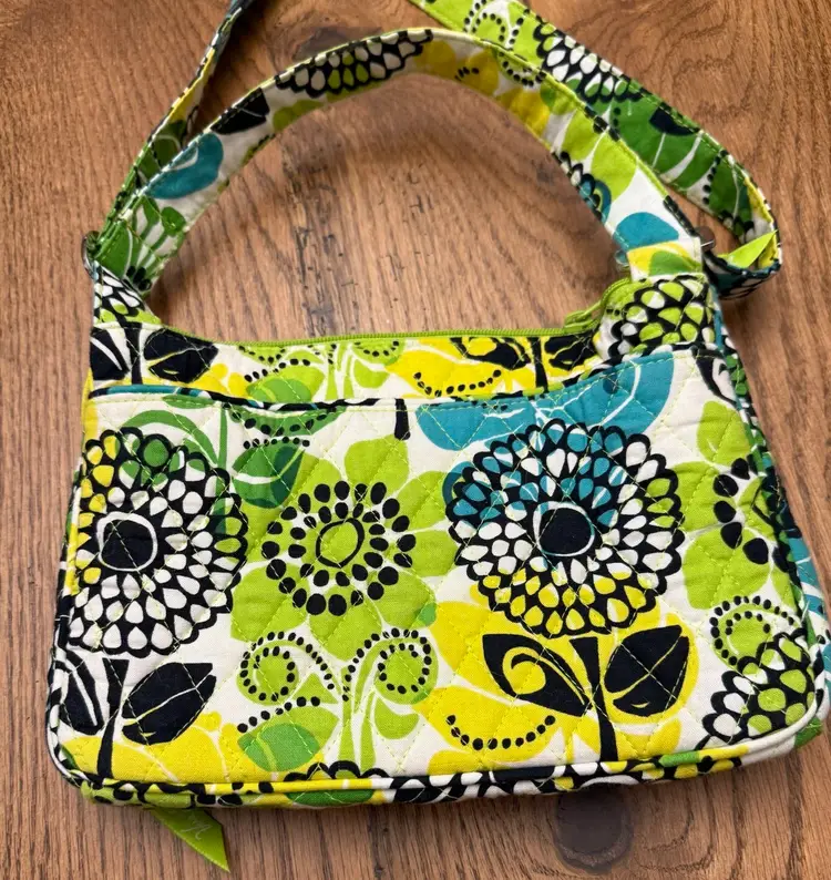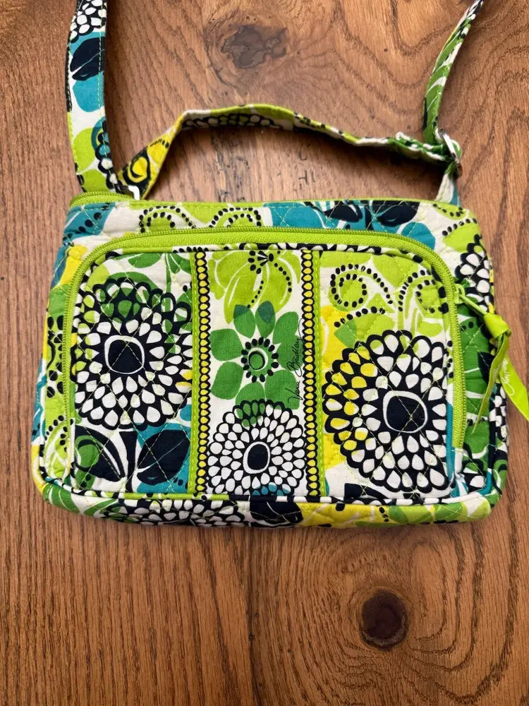 Stylish women's bag featuring a vibrant floral design. Perfect for adding a pop of color to any outfit. This Little Hipster Crossbody Shoulder Bag Is A Retired Pattern Print. This bag has three compartments. Measurements : 9 1/2 inches wide by 6 1/4 inches tall. Bottom is 9 inches long by 2 inches high. Front pocket has room for credit cards and extra room on both sides. The main compartment is large with a zipper pouch. Back compartment has magnet shut with huge area for your all things. Strap is adjustable. It shows nowhere, new tears or stains, great condition.!!