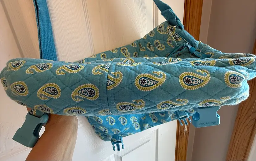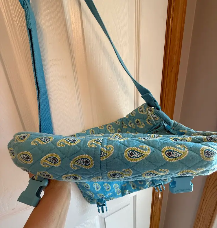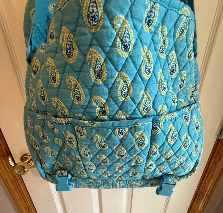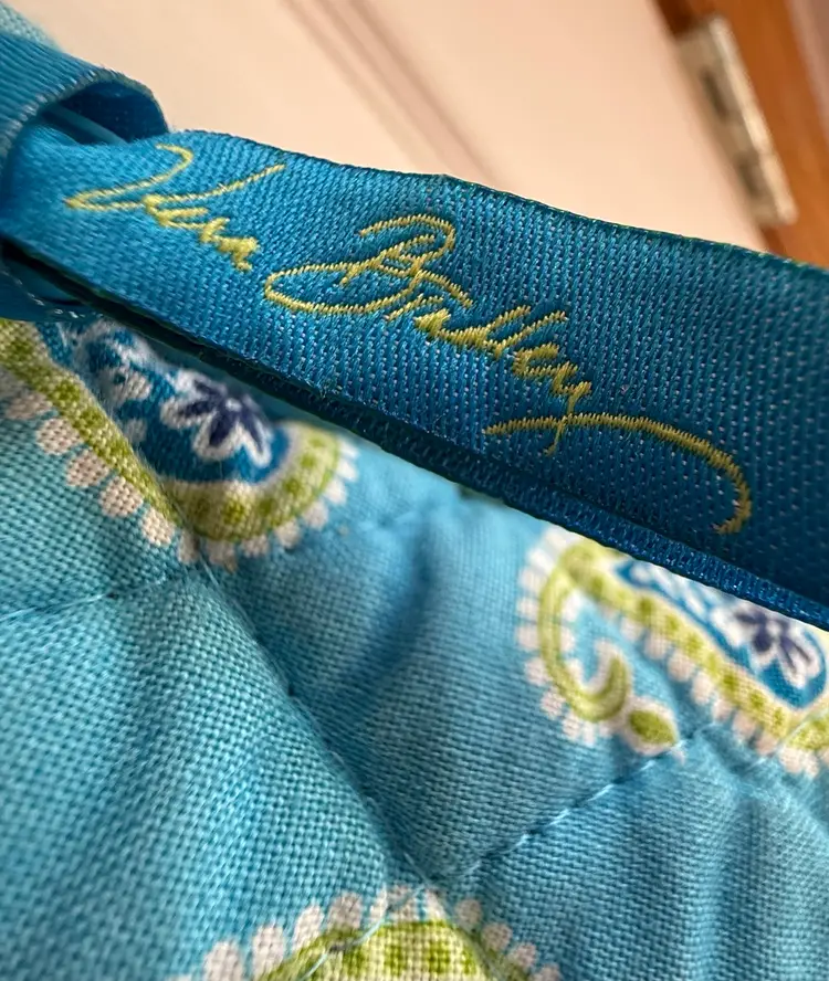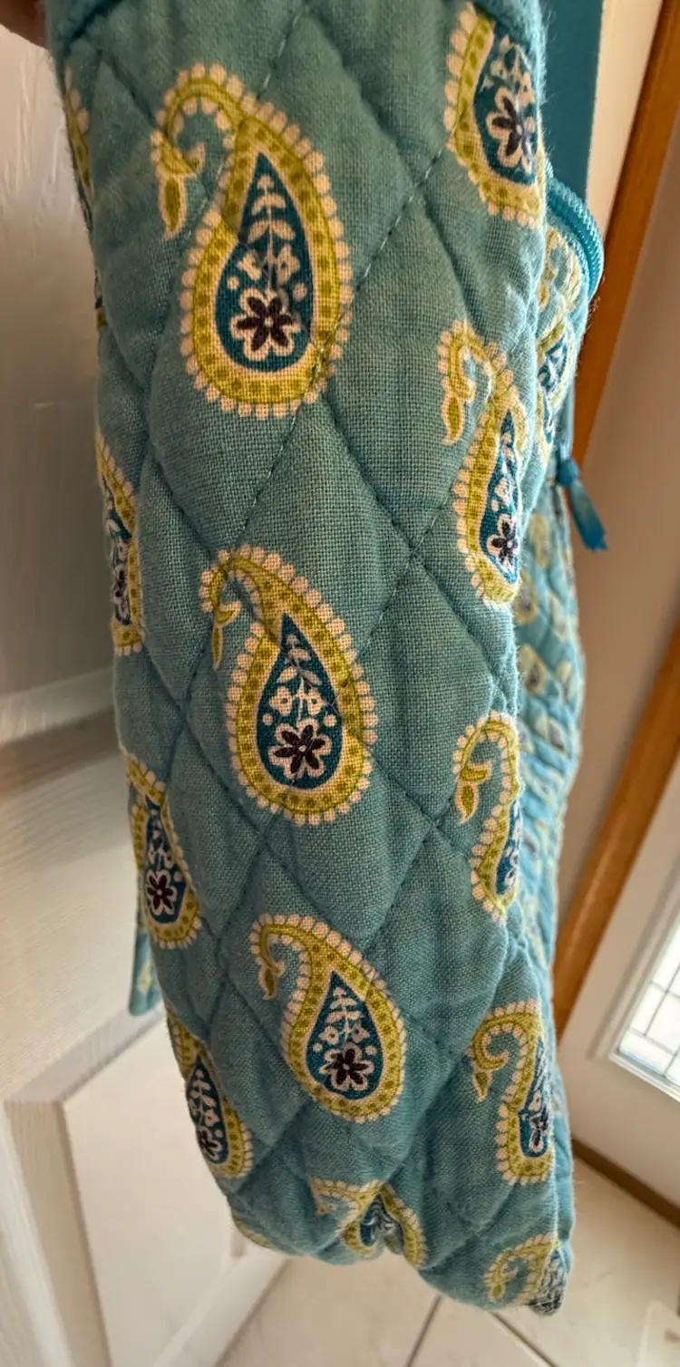 Stylish and versatile, this quilted blue paisley shoulder bag is perfect for everyday use. Its vibrant design adds a pop of color to any outfit. Adjustable strap, one big flap in the front great for Security. Multiple pockets on the inside and one outside pocket please see photos. Great condition. The width is 15 1/2 inches wide by approximately 12 inches high that is with the flap down the bottom measures with 13 1/2 inches and height on the bottom is 3 1/2 inches take care and talk to you soon