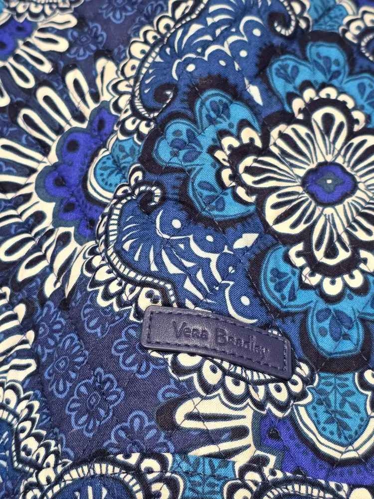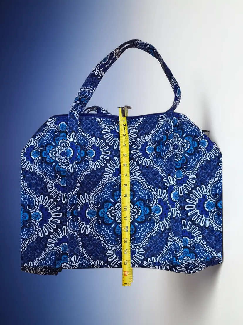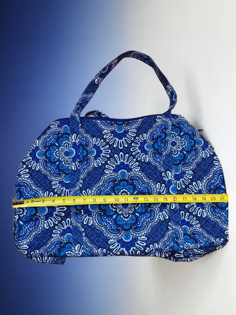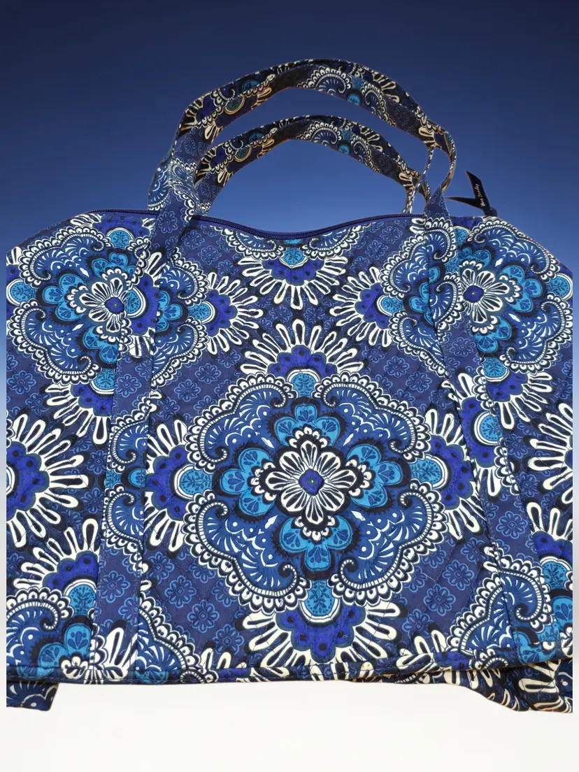 Vera Bradley Pleated Tote Shoulder Bag Blue Tapestry Duffle Bag 21.5 X 15.5"