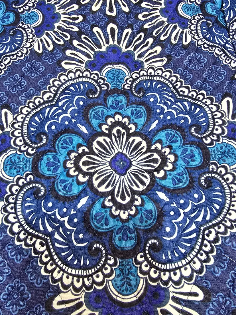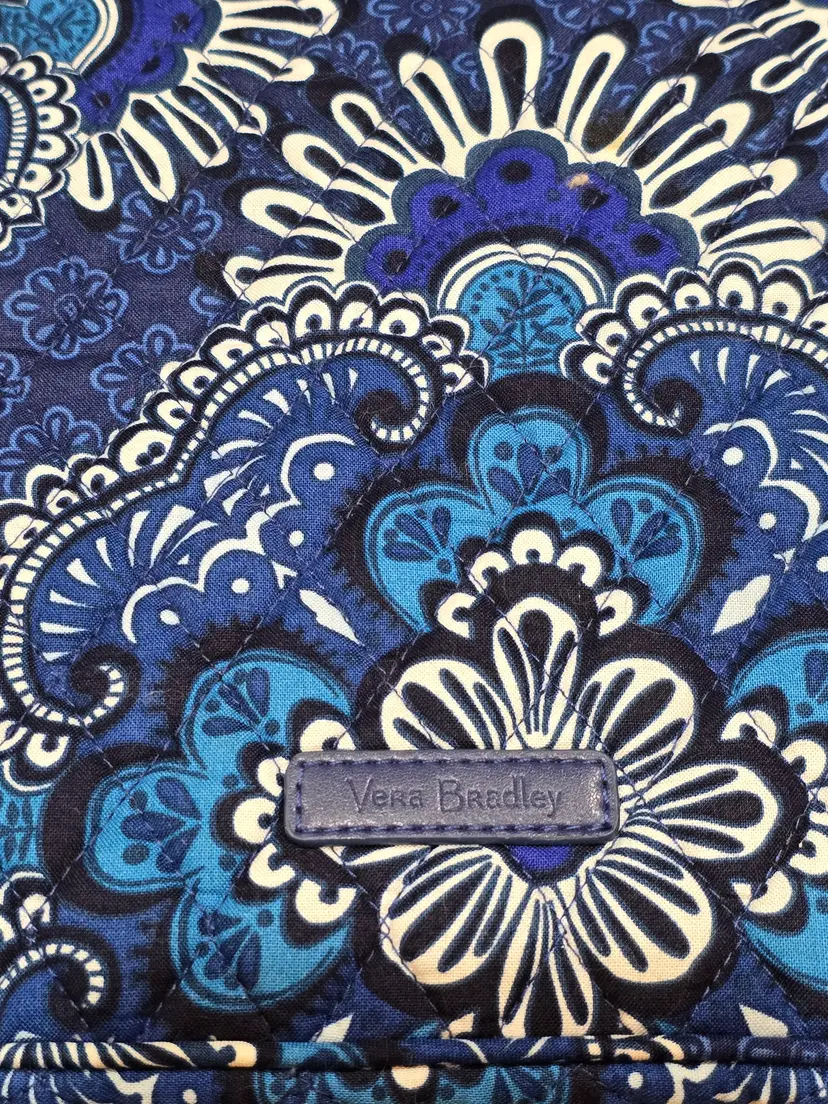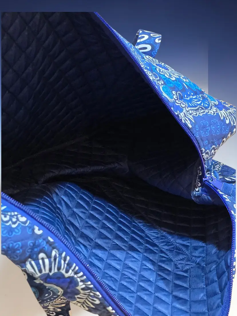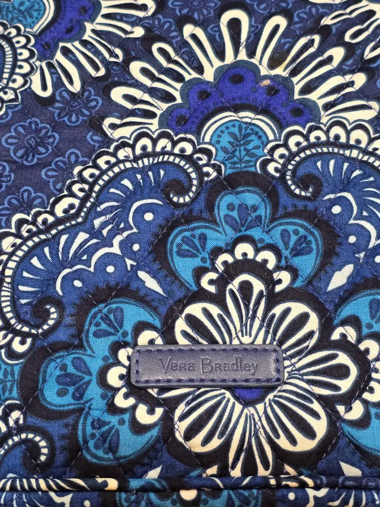 Vera Bradley Pleated Tote Shoulder Bag Blue Tapestry Duffle Bag 21.5 X 15.5"