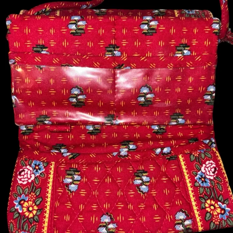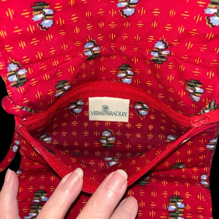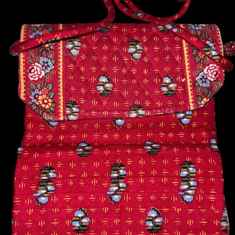 Authentic Vintage strap wallet in a Provincial Red Pattern.
