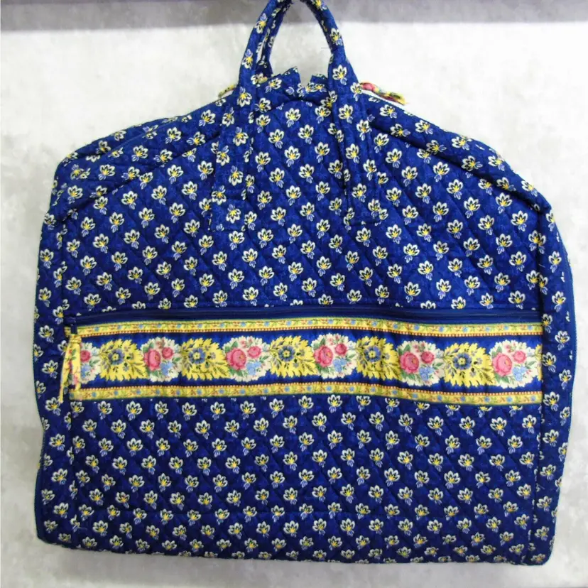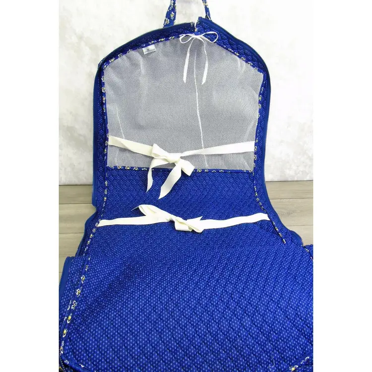 Brand: Vera Bradley Color: Blue Pattern: Floral Closure: Zipper Department: Women Style: Garment Hanging Bag Features: Quilted Cotton Fabricx Bag Height: 45 in. Lining Material: Plastic, Cotton, Mesh Product Line: Garment Bags Size: Large Bag Width: 24 in. Exterior Material: Cotton Exterior Color: Blue Model: Royalty Theme: Floral Occasion: Business, Travel, Casual Accents: Flowers