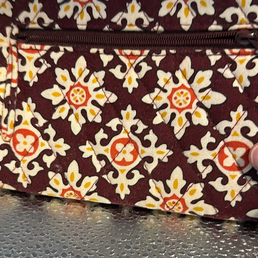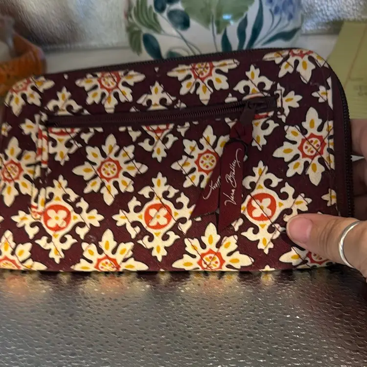 Vera Bradley wristlet. It has room for cards. It has a slot for an ID. It has a slot for cash.