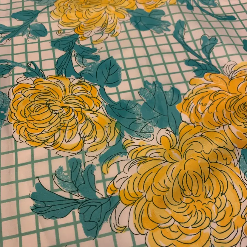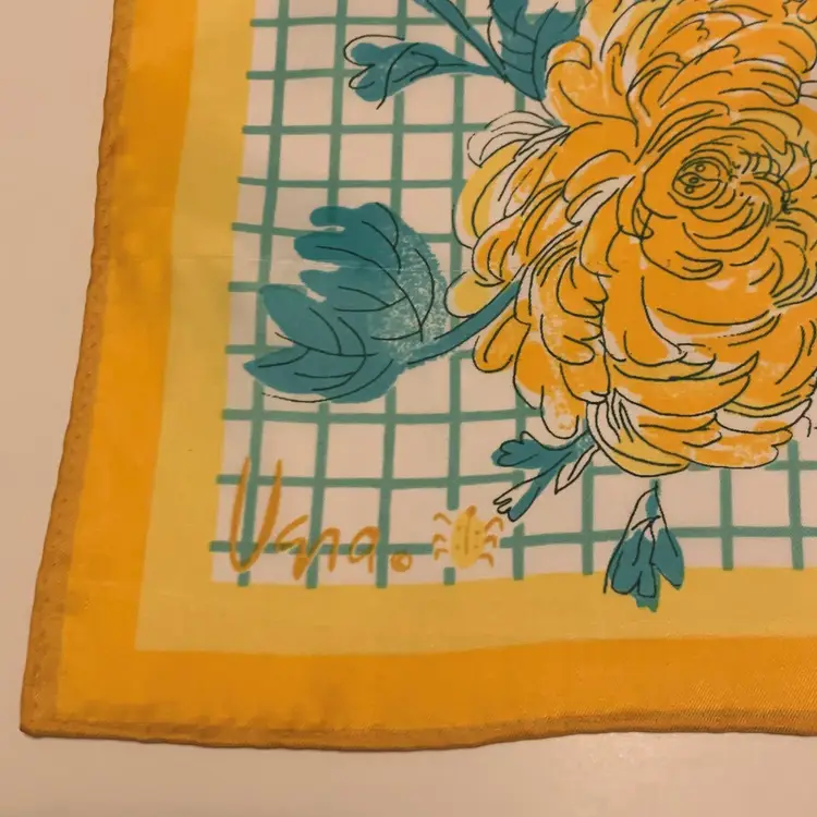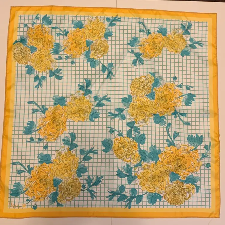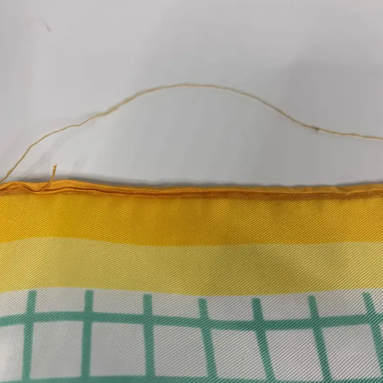 There are a few areas where the hand rolled hem needs repair, measures: 26" x 25", made of acetate.