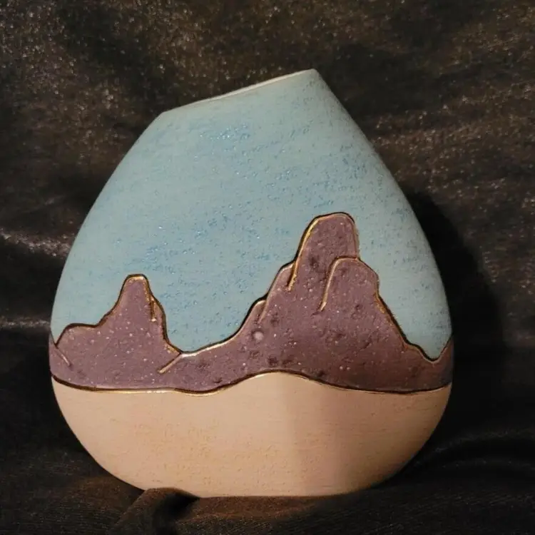 VERA RUSSELL Signed 22K Gold Southwest HAND PAINTED Art Pottery VINTAGE Vase