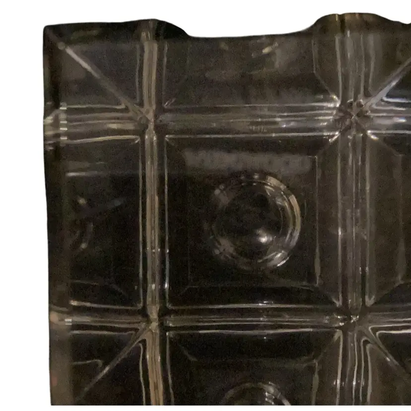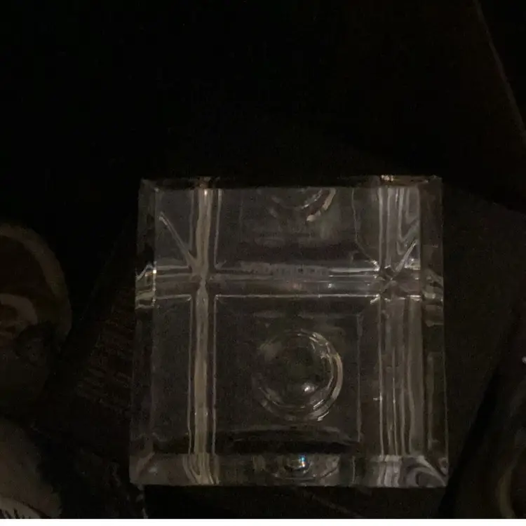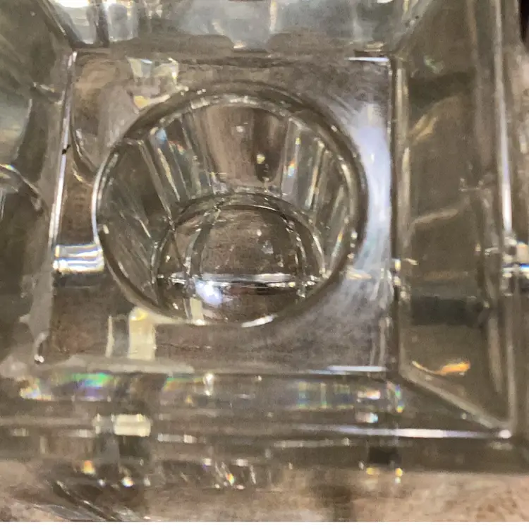 Wedgewood Vera Wang glass candle holder 6 inches tall very heavy no chips no cracks signed on the bottom measures 2 inches crossed, and 6 inches tall beveled down the edges. This is in the shape of a tall box.