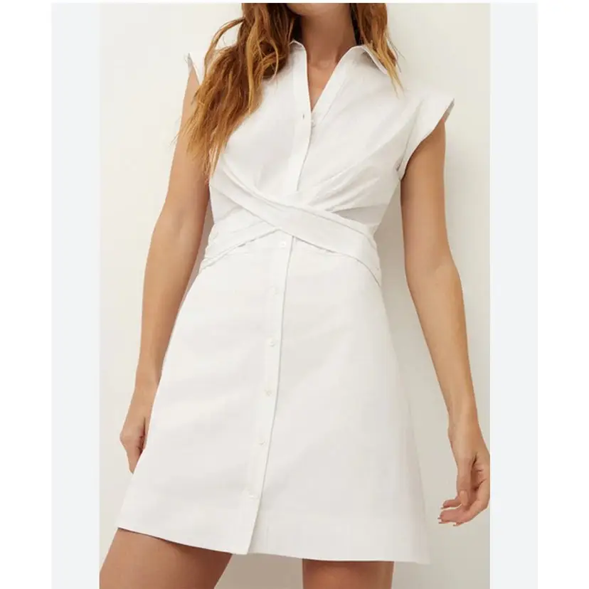 Veronica Beard Nagano cotton blend cross front shirt dress in white size 8
