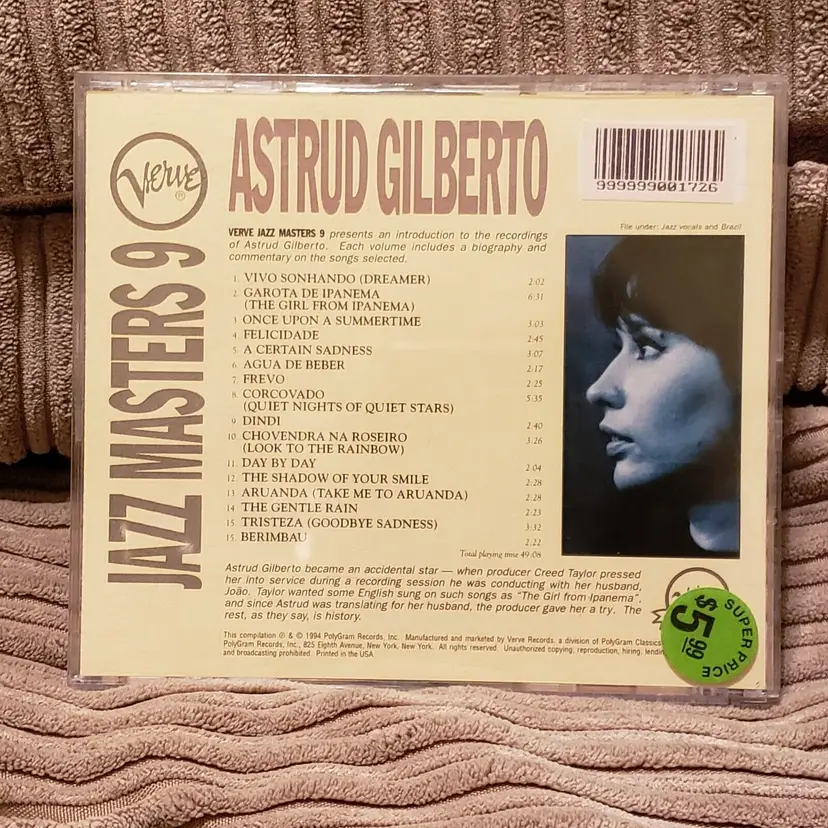 Artist: Astrud Gilberto Format: CD Record Label: Verve Release Year: 1994 Release Title: Verve Jazz Masters 9 Style: Brazilian Genre: Jazz, Brazilian