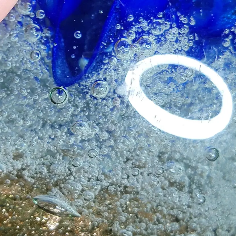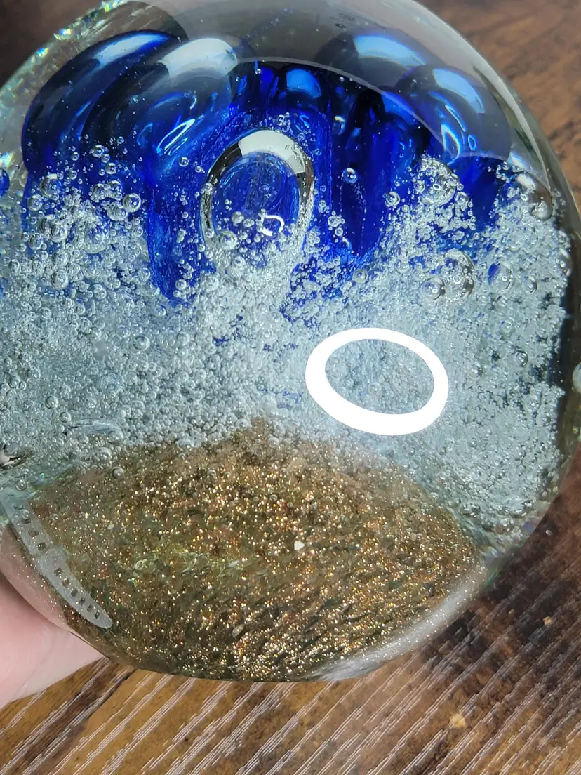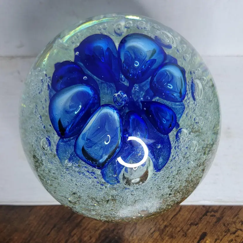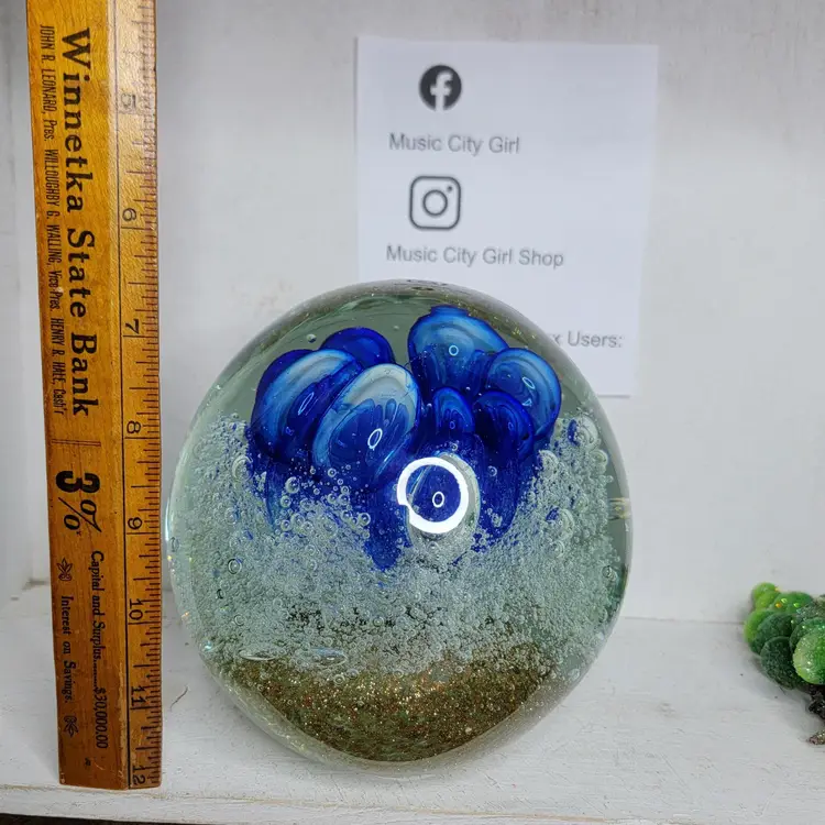 Add a splash of color to your desk with this stunning large blue swirl glass paperweight. Marked Diamond Star on bottom. Perfect for keeping your papers in place with style! I do not know a lot about paperweights. If you are wanting to know specific condition issues please ask. There are some very small pits noted by light ring circle for visual. There is one area of scratching noted in the other light ring circle. Shipping is calculated by itself. If it is safe to ship with other items, I will combine and refund, but purchase assuming it will ship alone.
