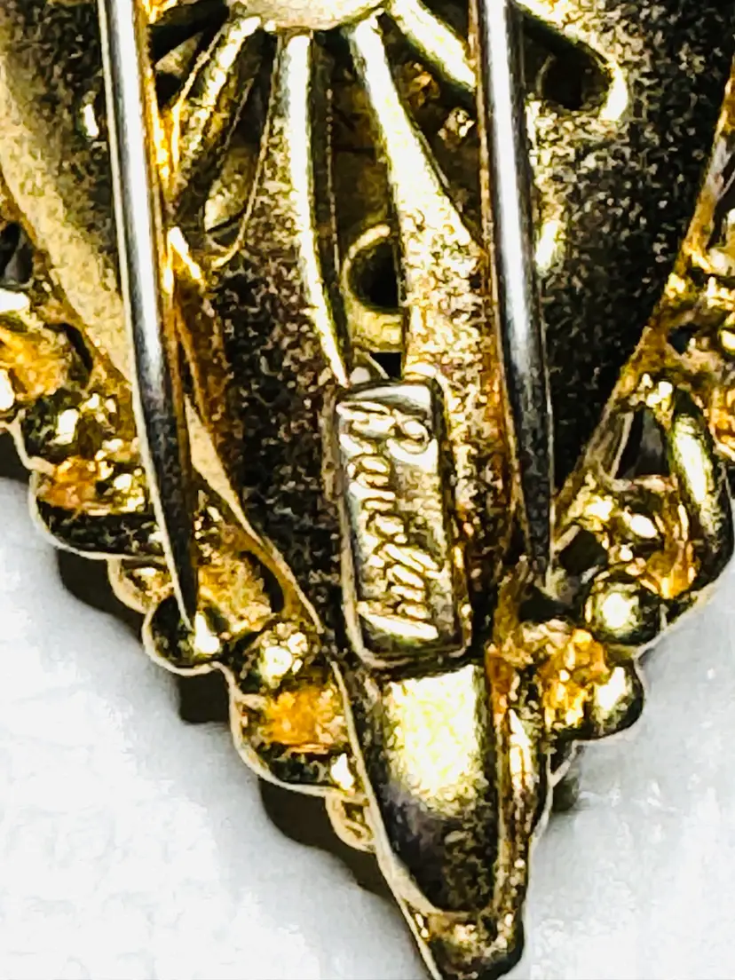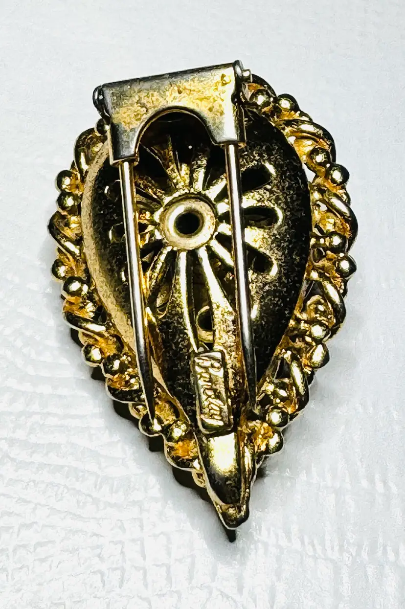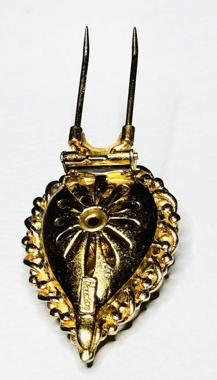 It is in very good vintage condition with slight plating wear on fork prongs. Rhinestones are clean and sparkling.