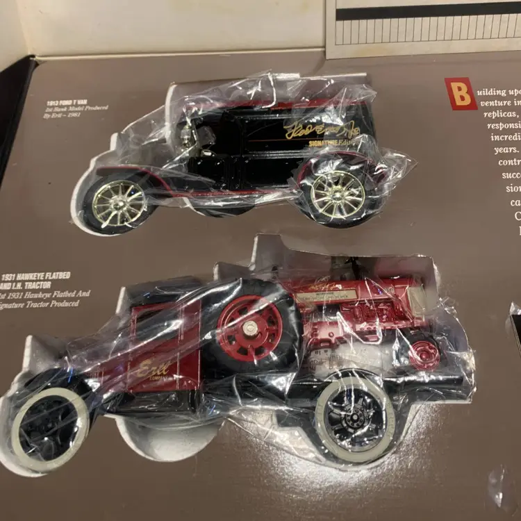 The ERTL Signature Edition 1913 Ford T Van and 1931 Hawkeye Flatbed with Tractor is a diecast toy vehicle set that captures the nostalgia and charm of classic Ford vehicles. With a multi-color design and intricate details, this collectible set is recommended for children aged 8 and up. The toys are part of the Signature Edition series, making them unique and special additions to any toy collection. Made in the United States in 1992, these vintage-inspired vehicles are perfect for both boys and girls who appreciate classic cars and trucks.