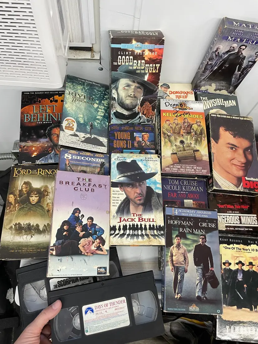 1980s 1990s VHS tapes lot of 20 western, military, sci-fi, comedy action. Days of thunder and scorpion King do not have cases. The good bad and the ugly is a two tape set. Please see pictures for titles.