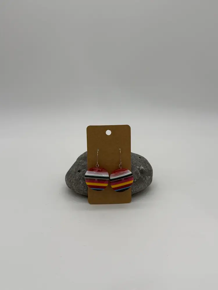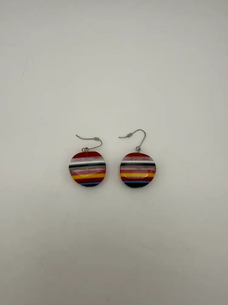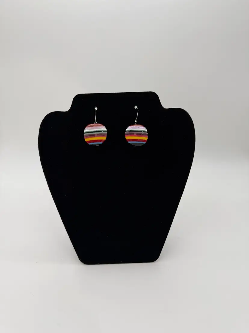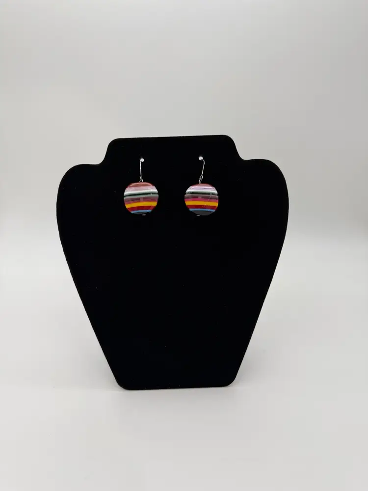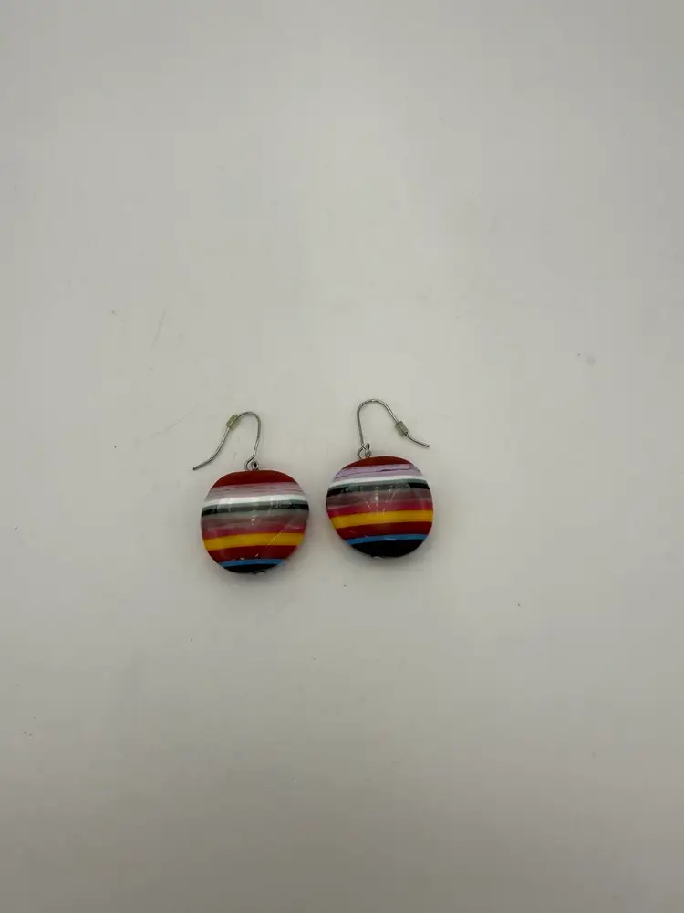 These vintage sterling silver hook earrings feature a colorful round candy swirl design, measuring 23mm x 24mm in diameter. Handmade and featuring a 2” dangle/drop style, these earrings are perfect for women looking to add a touch of beauty and artistry to their outfit. The multicolor acrylic material adds a fun and vibrant touch, while the sterling silver base metal ensures durability and quality. With a double-sided pattern and extra support from silicone backings, these earrings are both stylish and comfortable for everyday wear.