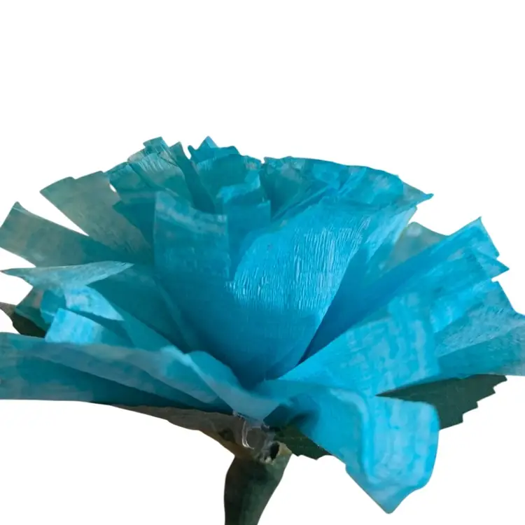 Vibrant Crepe Paper Flowers Made By Me Turquoise Blue Color Marigold Carnation Blossom 3.5-4” Diameter Blossom And 5.5-6” Tall Overall
