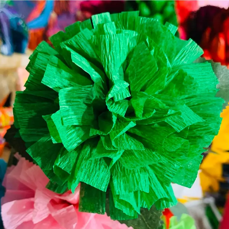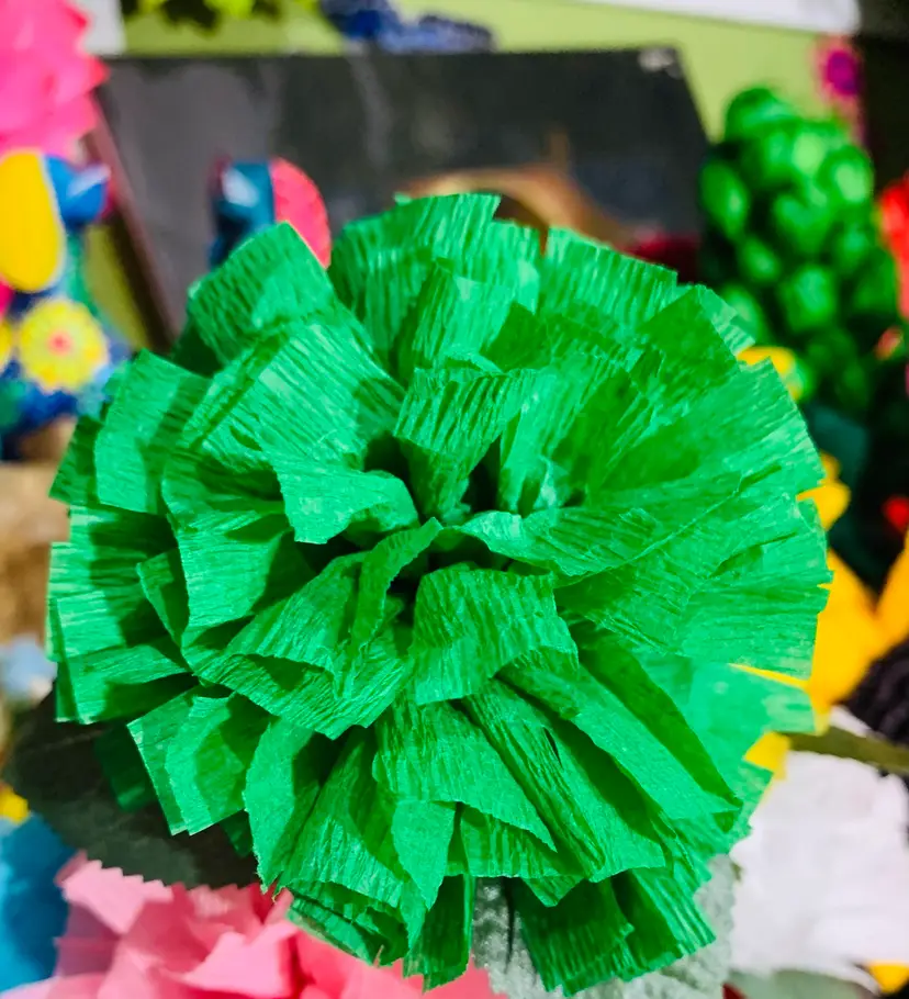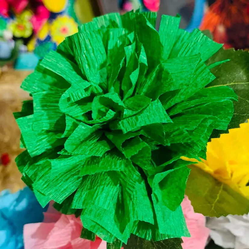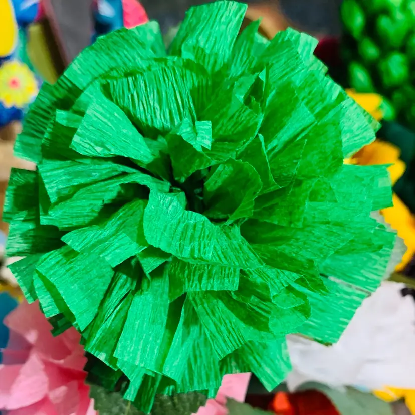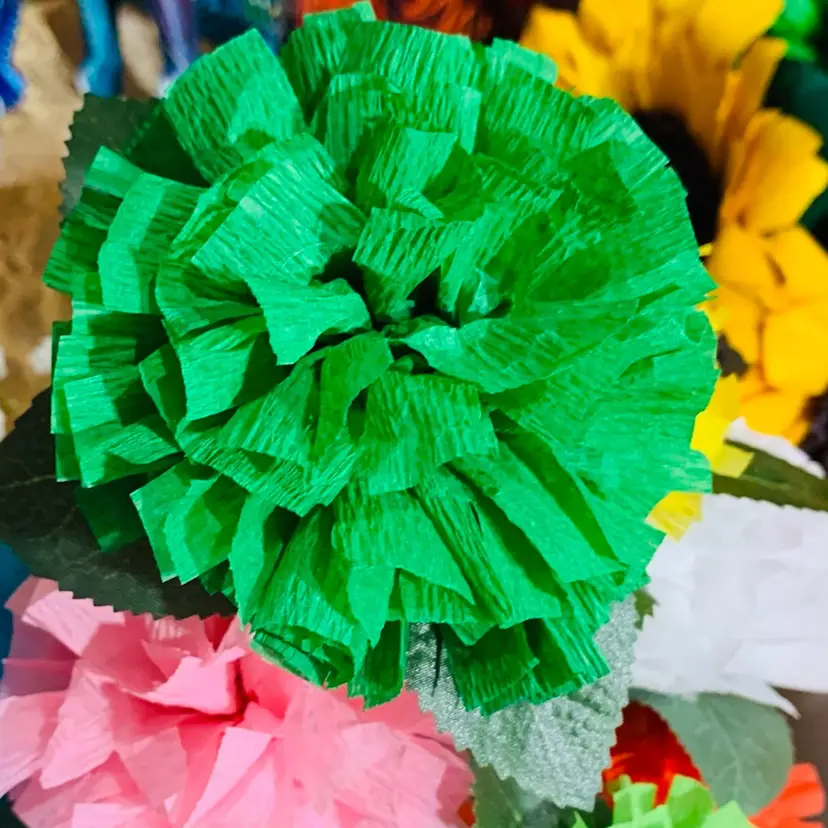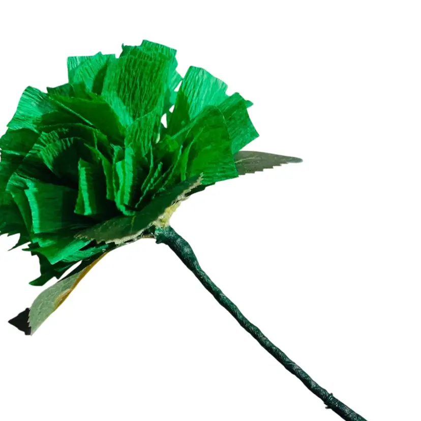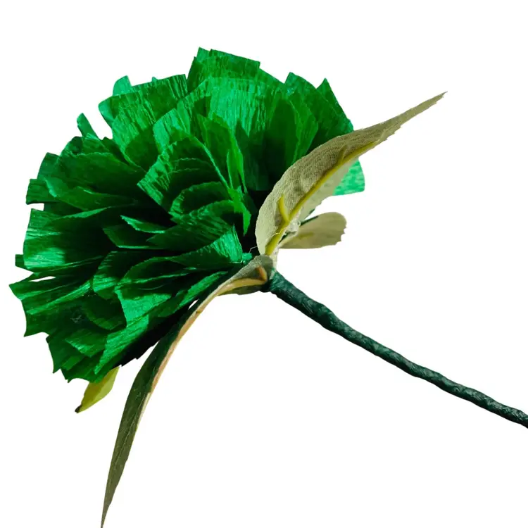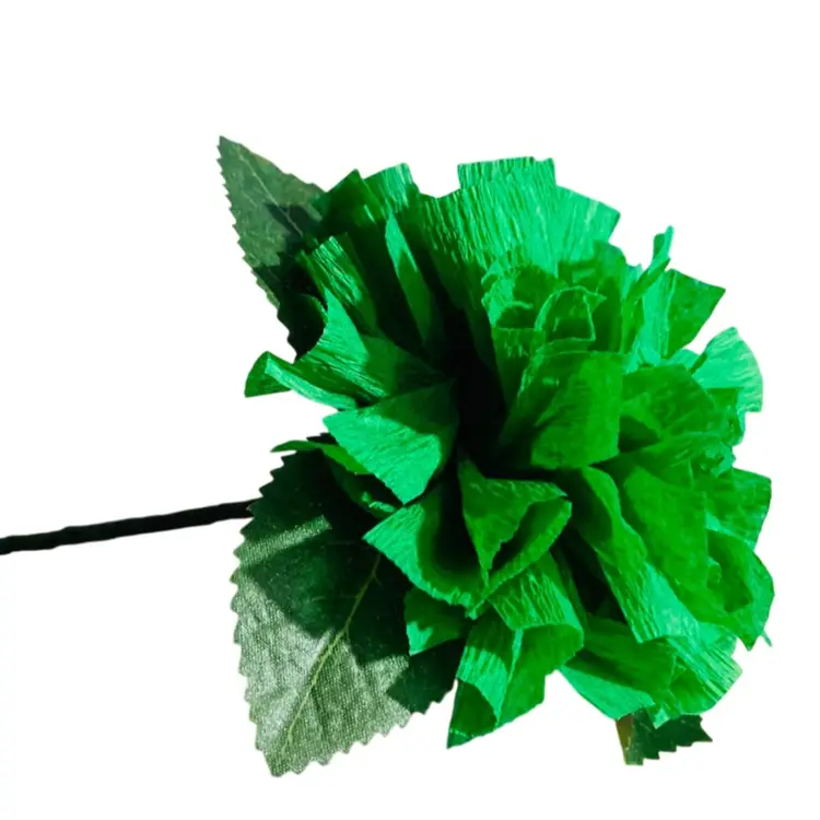 Vibrant Crepe Paper Flowers Made By Me Kelly Green Color Marigold Carnation Blossom 3.5-4” Diameter Blossom And 5.5-6” Tall Overall