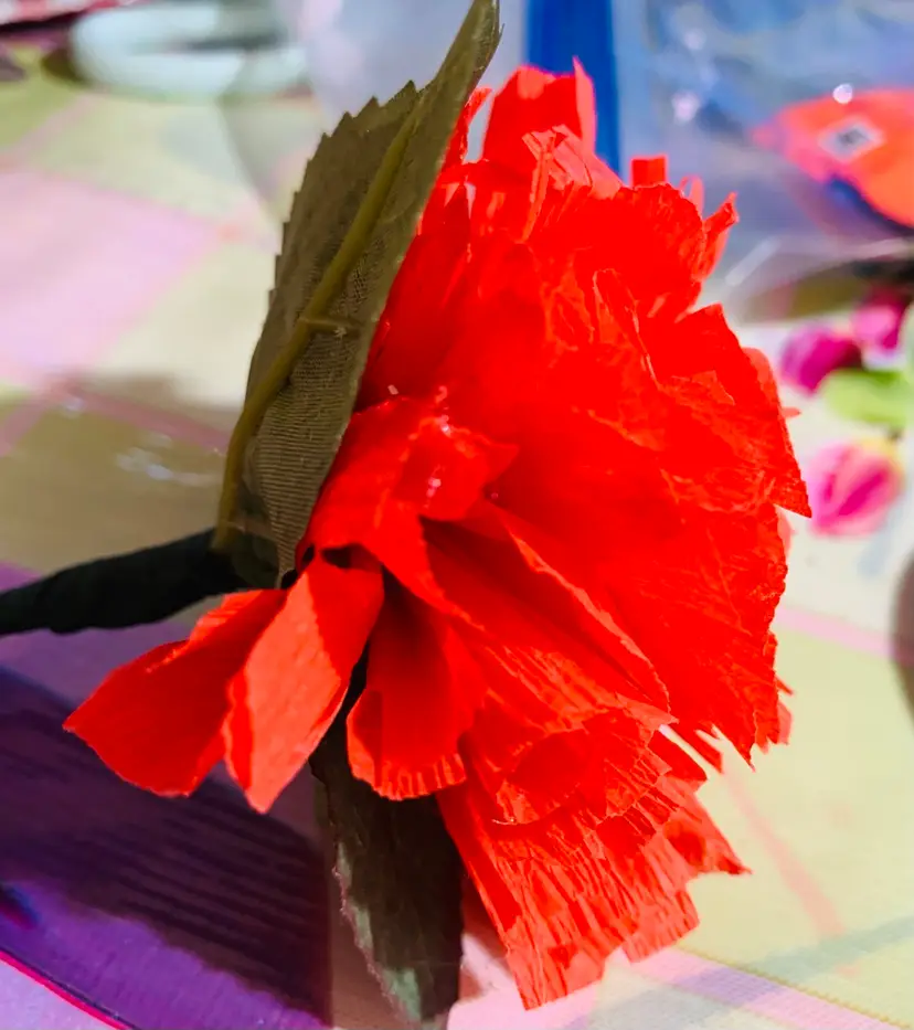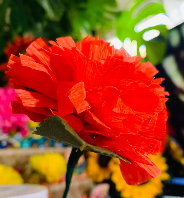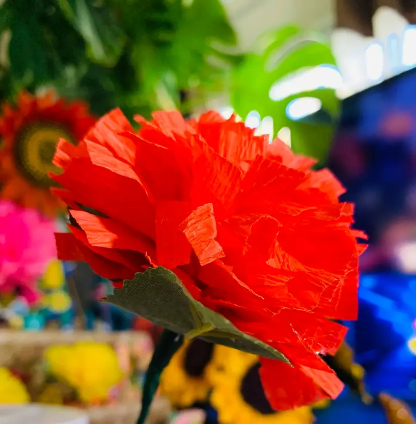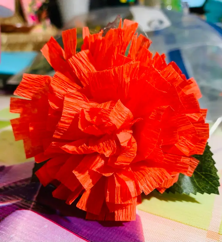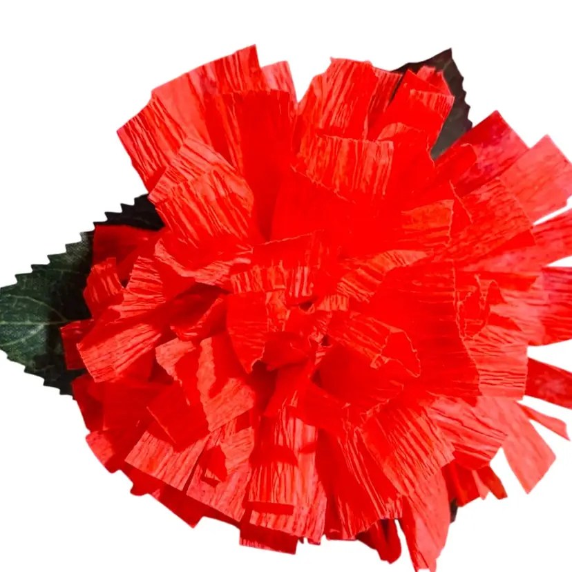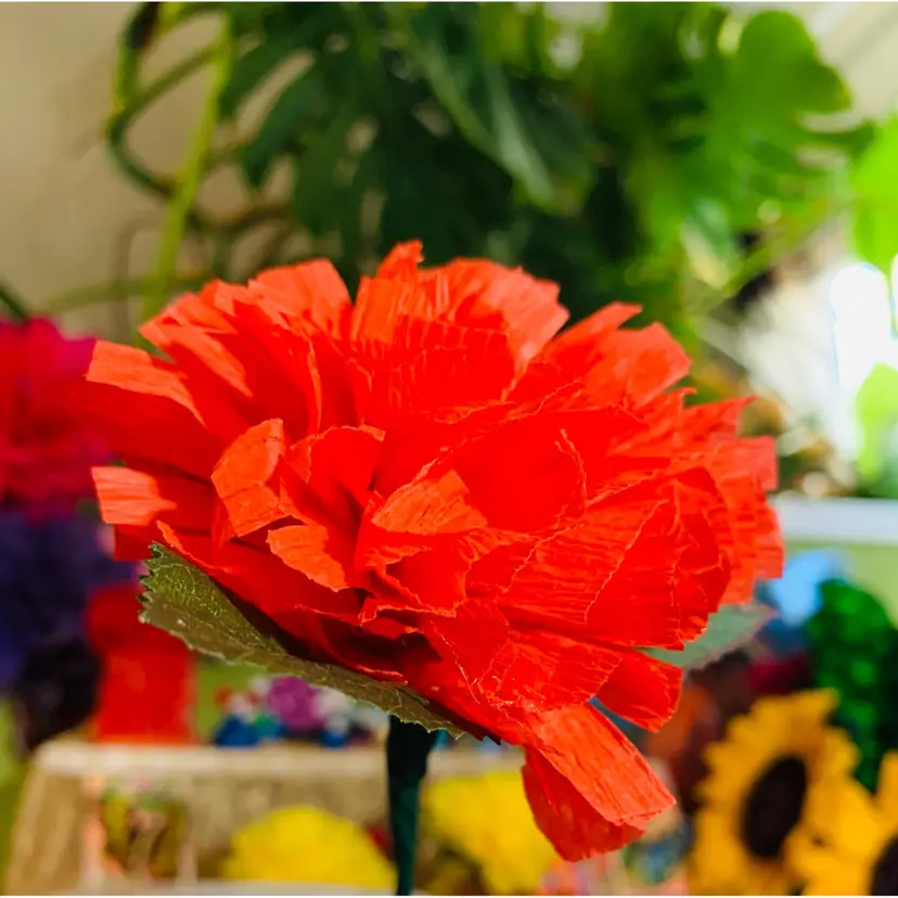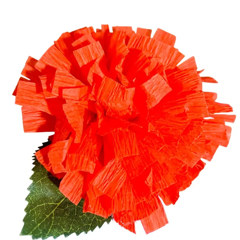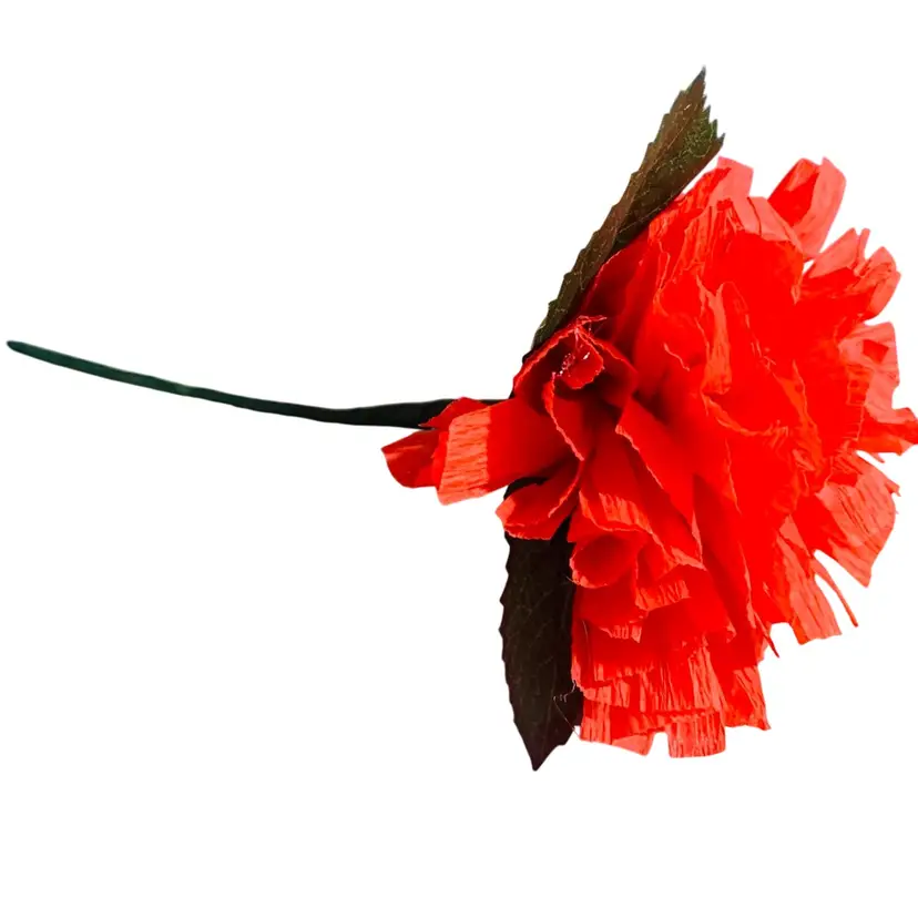 Vibrant Crepe Paper Flowers Made By Me Red Color Marigold Carnation Blossom 3.5-4” Diameter Blossom And 5.5-6” Tall Overall