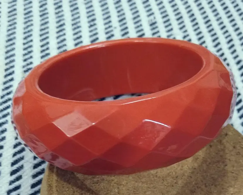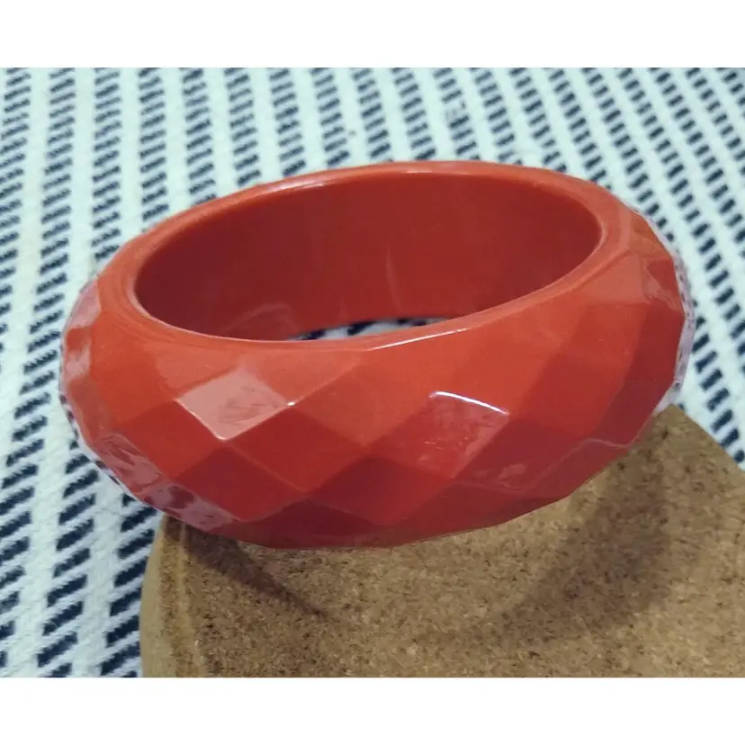 Add a pop of color with this bold faceted vintage lucite bangle. Perfect for stacking or wearing solo for a statement look.