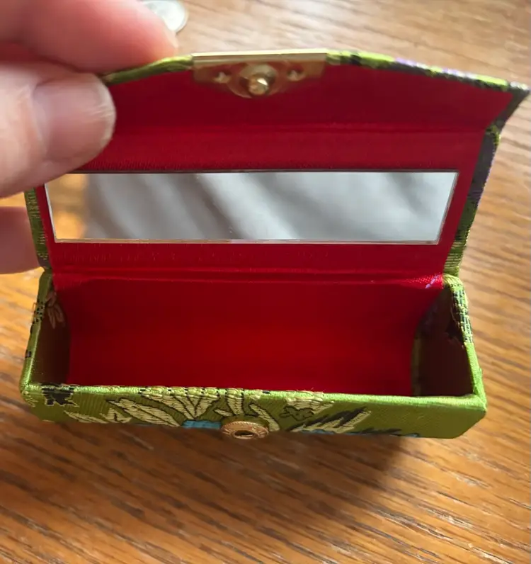 Cute lipstick holder with a striking green and blue floral pattern. Perfect for keeping your favourite lipstick safe!