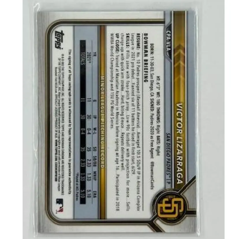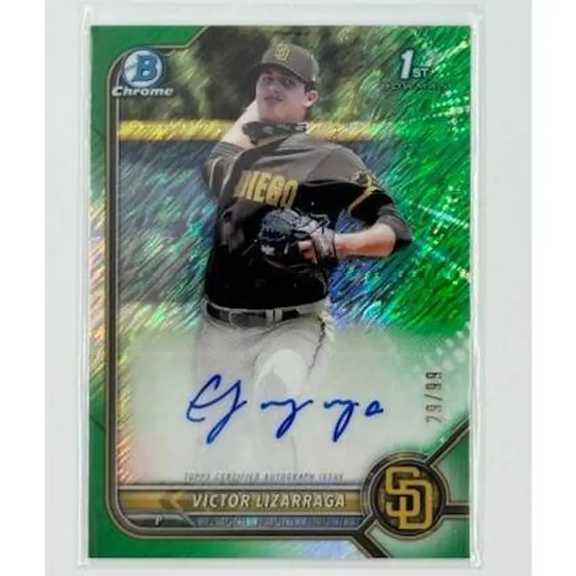 Victor Lizarraga 2022 Bowman Chrome Green Shimmer Auto /99 San Diego Padres