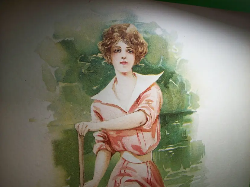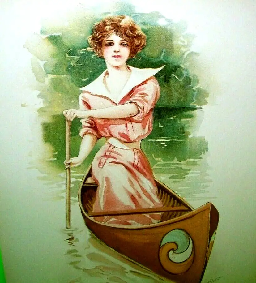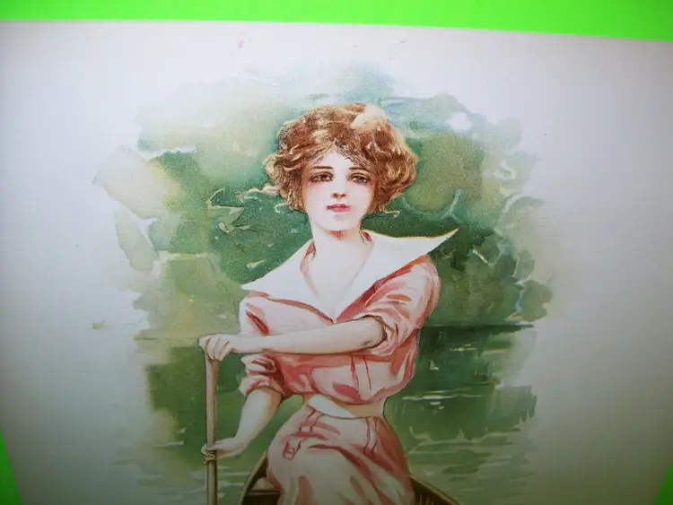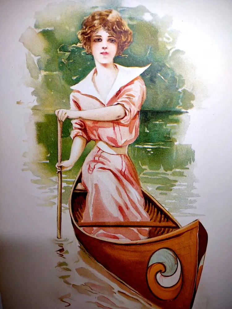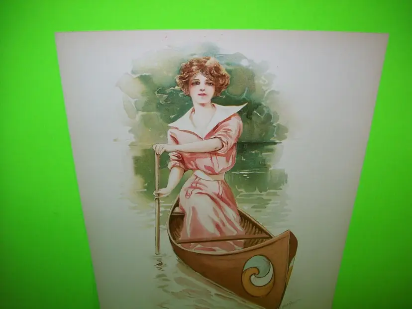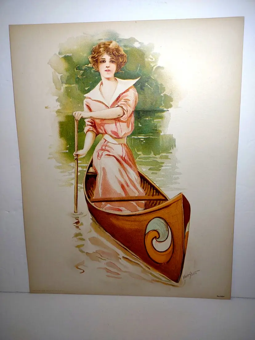 Artist: Maud Stumm Unit of Sale: Single Piece Signed By: Maud Stumm Size: Medium (up to 36in.) Date of Creation: 1900-1949 Item Length: 13 in Region of Origin: Unknown Framing: Unframed Listed By: Dealer or Reseller Year of Production: 1908 Width (Inches): 10 Item Height: 13 in Style: Vintage Features: Signed Item Width: 10 in Culture: Unknown Time Period Produced: 1900-1924 Image Orientation: Portrait Signed: Yes Color: Multi-Color Material: Lithograph, Paper Certificate of Authenticity (COA): No Original/Licensed Reprint: Original Subject: Women Print Surface: Paper Type: Print Height (Inches): 13 Theme: Art, Nature, People, Canoe, Boats Production Technique: Lithography Country/Region of Manufacture: United States