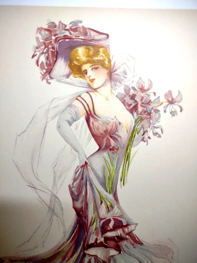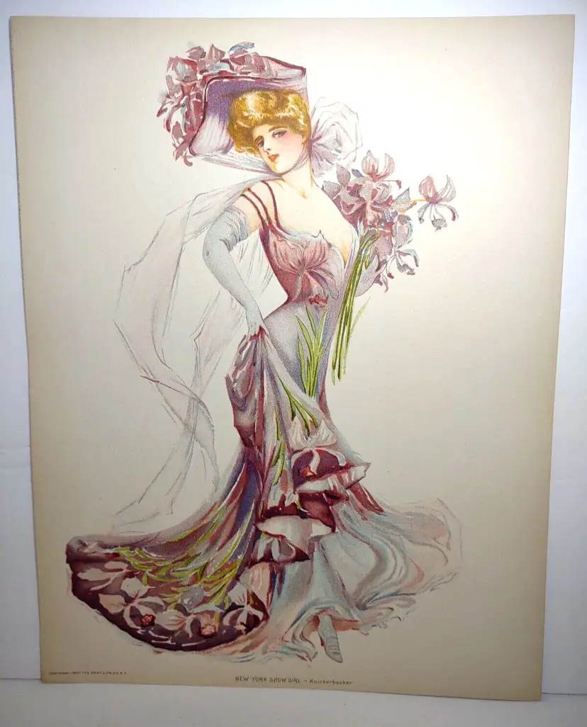 Unit of Sale: Single Piece Artist: Maud Stumm Size: Medium (up to 36in.) Date of Creation: 1900-1949 Item Length: 13 Region of Origin: Unknown Framing: Unframed Listed By: Dealer or Reseller Year of Production: 1907 Width (Inches): 10 Item Height: 13 Style: Vintage Features: Victorian Item Width: 10 in Culture: Unknown Time Period Produced: 1900-1924 Image Orientation: Portrait Signed: No Color: Multi-Color Material: Lithograph, Paper Certificate of Authenticity (COA): No Original/Licensed Reprint: Original Print Surface: Paper Subject: New York Type: Print Height (Inches): 13 Theme: Art, Prints, Victorian, Women, Hat, Flower Hat Production Technique: Lithography Country/Region of Manufacture: United States