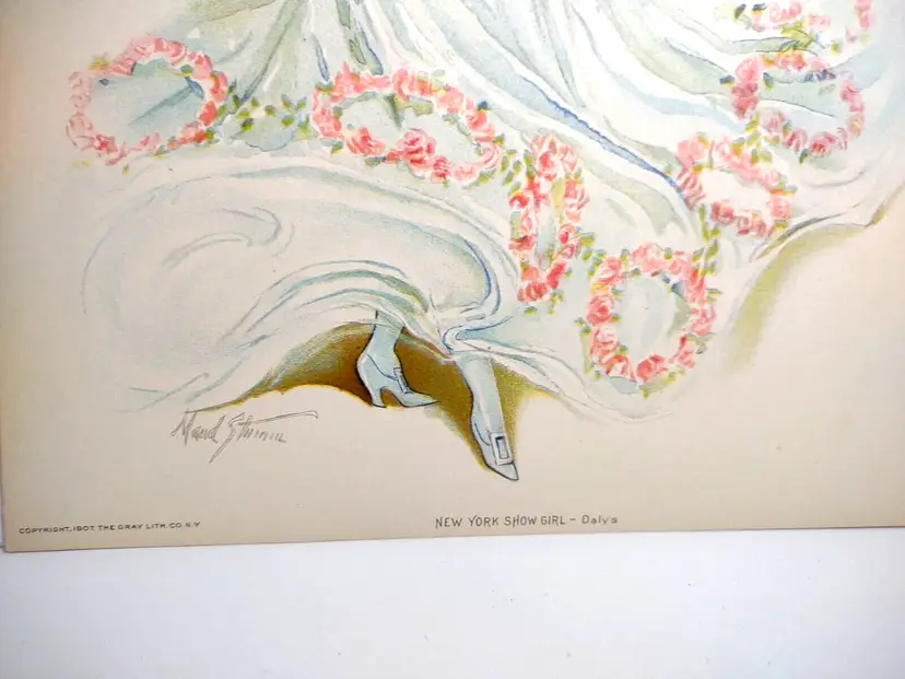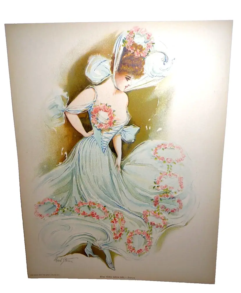Unit of Sale: Single Piece Artist: Maud Stumm Signed By: Maud Stumm Size: Medium (up to 36in.) Date of Creation: 1900-1949 Item Length: 13 Region of Origin: Unknown Framing: Unframed Listed By: Dealer or Reseller Year of Production: 1907 Width (Inches): 10 Item Height: 13 Style: Vintage Features: Victorian Item Width: 10 in Culture: Unknown Time Period Produced: 1900-1924 Image Orientation: Portrait Signed: Yes Color: Multi-Color Material: Lithograph, Paper Certificate of Authenticity (COA): No Original/Licensed Reprint: Original Print Surface: Paper Subject: New York, New York Show Girls, Women Type: Print Height (Inches): 13 Theme: Art, Prints, Victorian, Women, Hat, Flower Hat Production Technique: Lithography Country/Region of Manufacture: United States