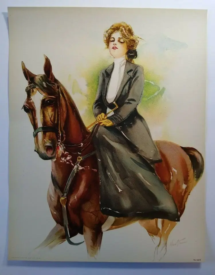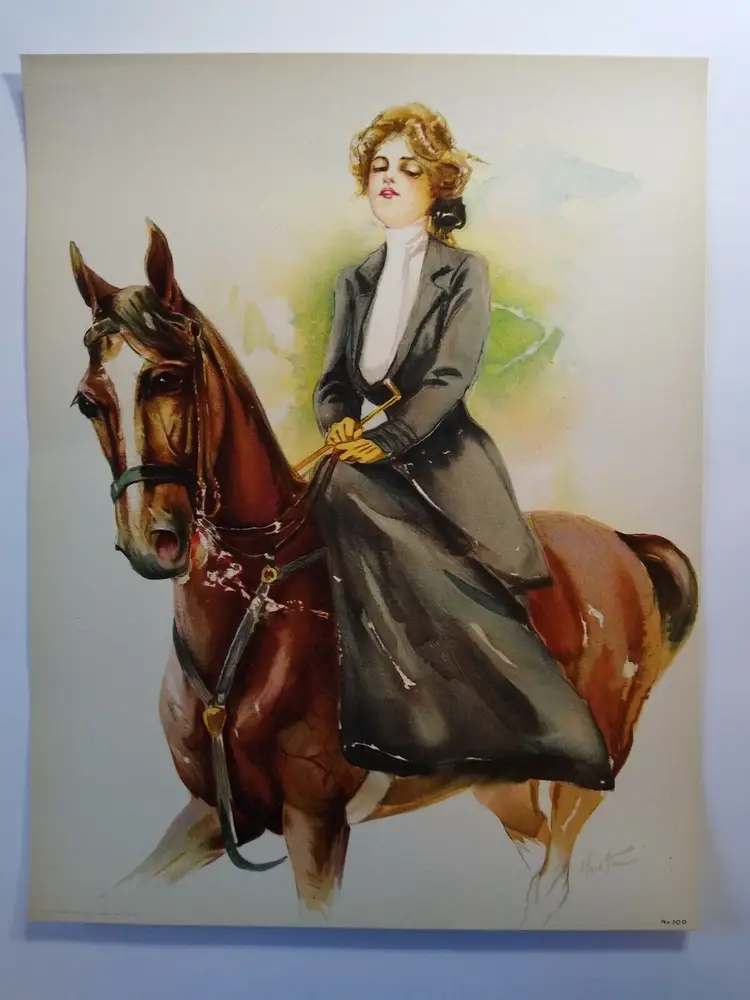 Artist: Maud Stumm Unit of Sale: Single Piece Signed By: Maud Stumm Size: Medium (up to 36in.) Date of Creation: 1900-1949 Item Length: 13 Region of Origin: Unknown Framing: Unframed Listed By: Dealer or Reseller Year of Production: 1908 Width (Inches): 10 Item Height: 13 Style: Vintage Features: Signed Item Width: 10 in Culture: Unknown Time Period Produced: Unknown Image Orientation: Portrait Signed: Yes Color: Multi-Color Material: Lithograph, Paper Certificate of Authenticity (COA): No Original/Licensed Reprint: Original Subject: Horse, Horse Riding, Women Print Surface: Paper Type: Print Height (Inches): 13 Theme: Art Production Technique: Lithography Country/Region of Manufacture: United States
