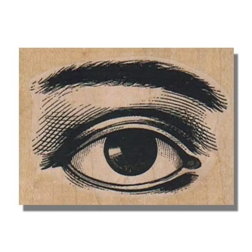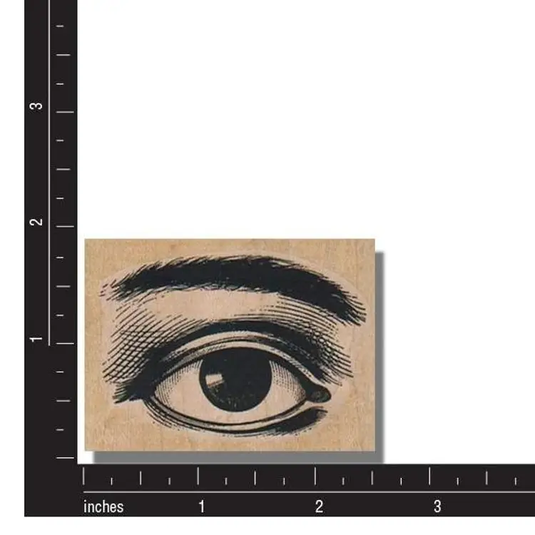 Victorian Engraving Eye With Brow Rubber Stamp Size: 1-3/4 x 2-1/2 inches Wood Mounted Red Rubber Handmade • Perfect for card making, gift tags, scrapbooking, journaling, mixed media projects and crafts