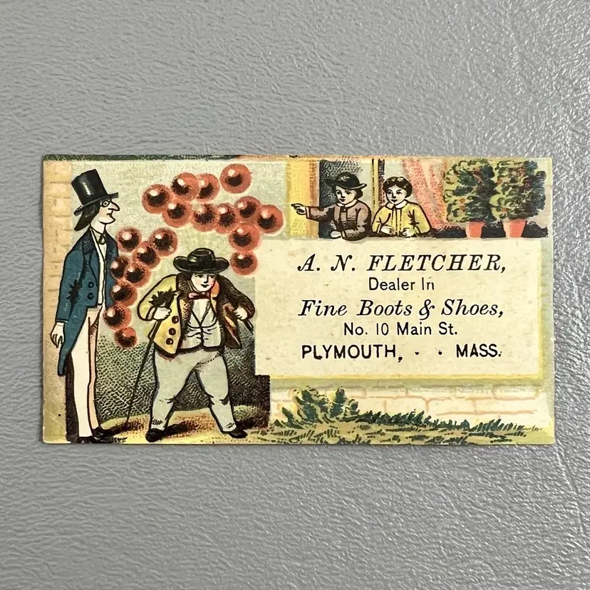 Victorian Trade Card A.N. Fletcher Fine Boots Shoes Plymouth Mass No. 10 Main St.