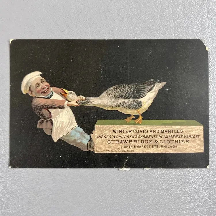 Victorian Trade Card Chef W/ Goose Strawbridge & Clothier Market St Philadelphia PA