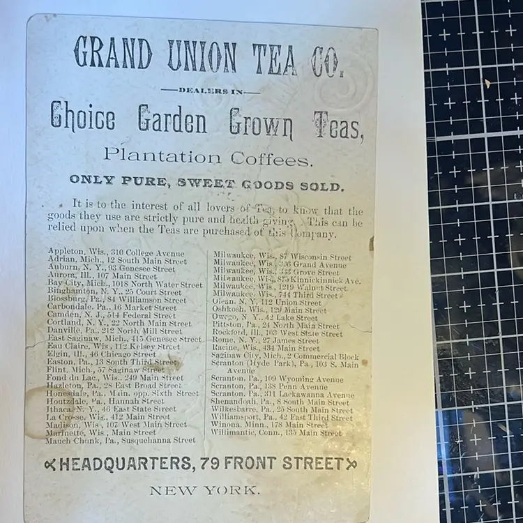 Grand union tea co. Small tears in side of card as shown in picture