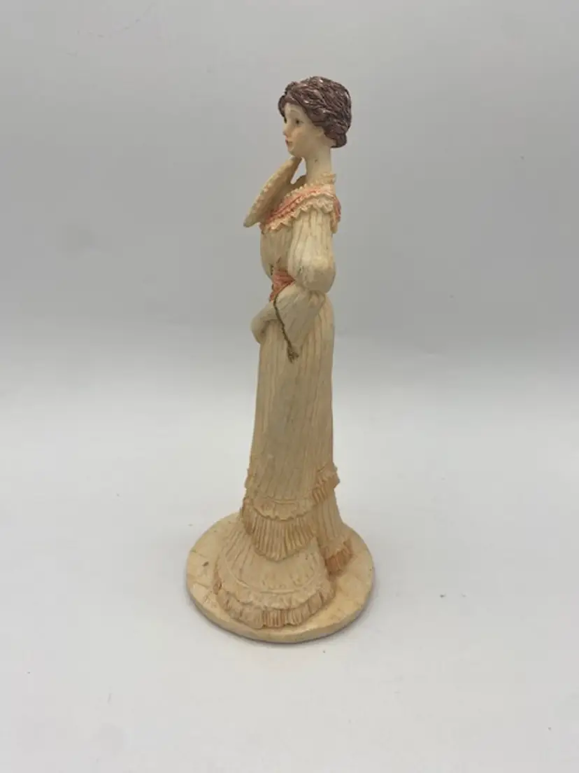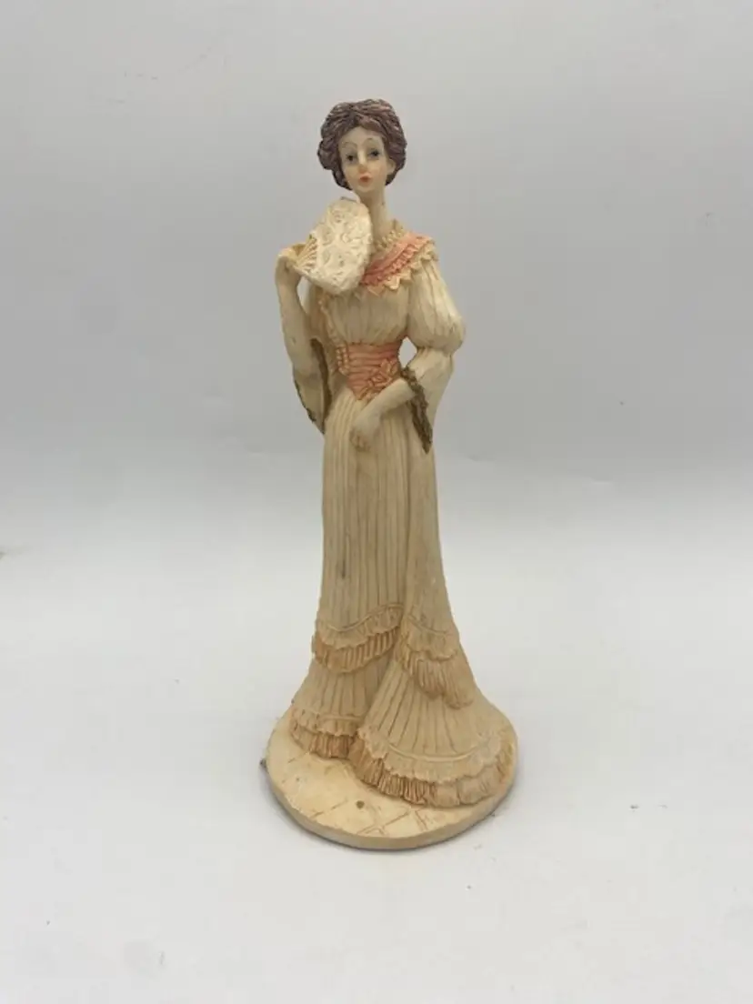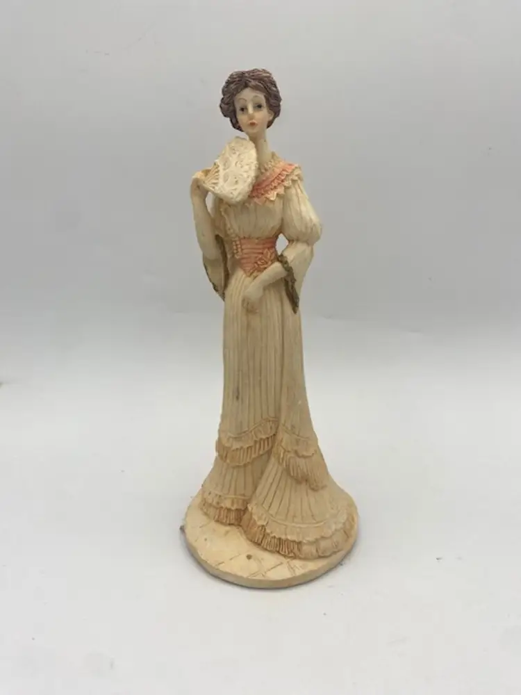 This Victorian Woman 7.5 inch figurine is a charming addition to any collection or decor. Crafted from porcelain and ceramic, this medium-sized figurine features a classic Victorian style with an all-over pattern and multicolor finish. Standing at 7.5 inches tall, this figurine depicts a woman in a timeless and elegant pose, perfect for any room and occasion. The original piece from the mid-20th century comes unboxed, making it a unique and eye-catching display for collectors of decorative figurines.