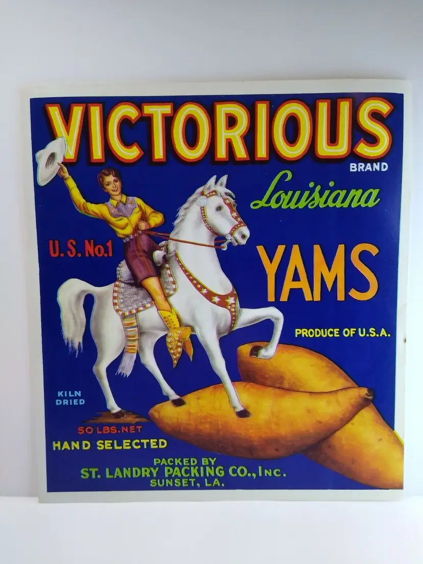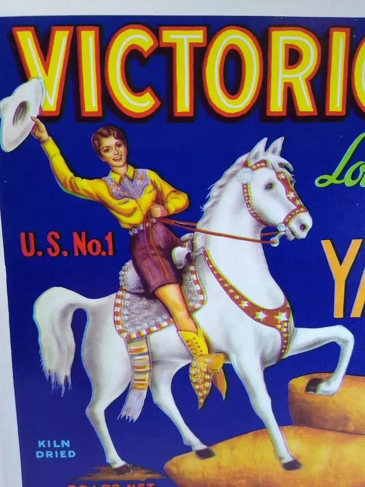 Colorful vintage 9" x 10" unused new old stock condition crate label. New old stock with lower creases but in great condition.