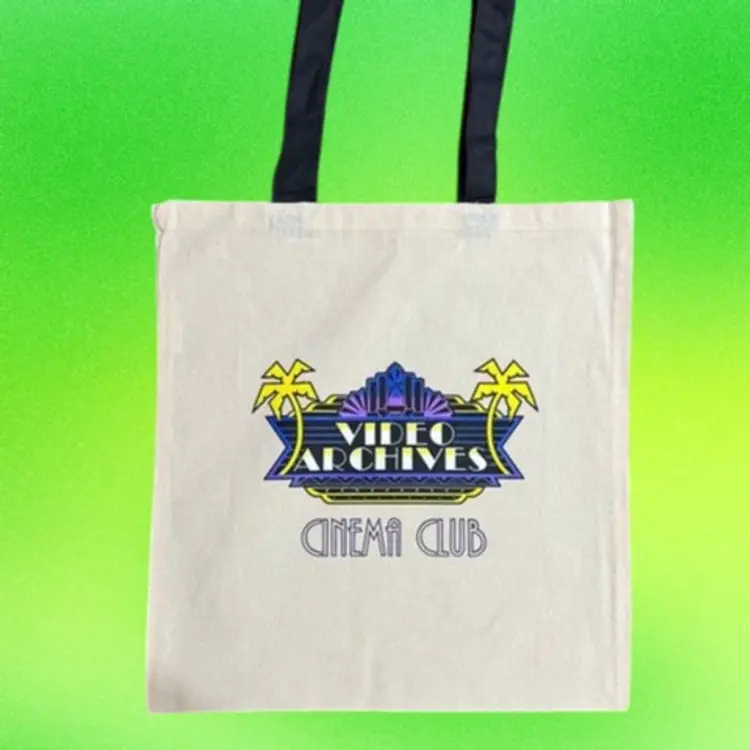 Video Archives Cinema Club is Quentin Tarantino's micro cinema located in the Vista Theater. Comes in black or natural. Body of the tote measures 14 1/2 " (width) x 15" (length) $8.95 U.S. Shipping