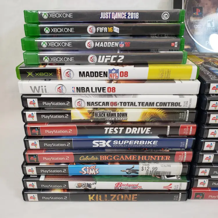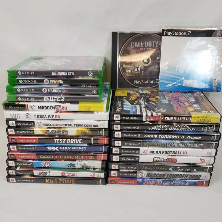 Mixed lot of video games. 19-Playstation 2, 1-Wii, 1-Xbox, and 4-XboxOne. The XboxOne Just Dance is sealed. All other ones are open. Located in Central Kansas.