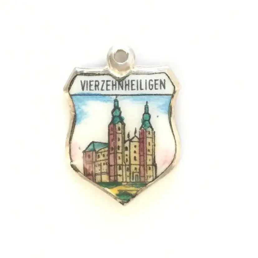 Vierzehnheiligen - Germany - Vintage Enamel Souvenir Travel Shield Bracelet Charm - 800 Silver