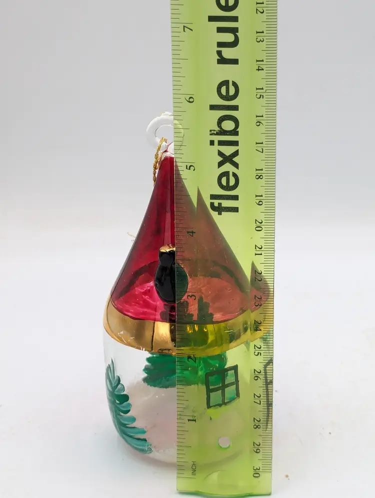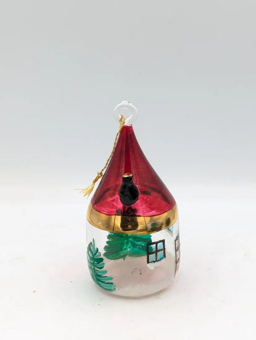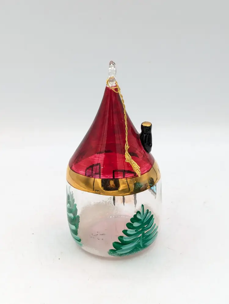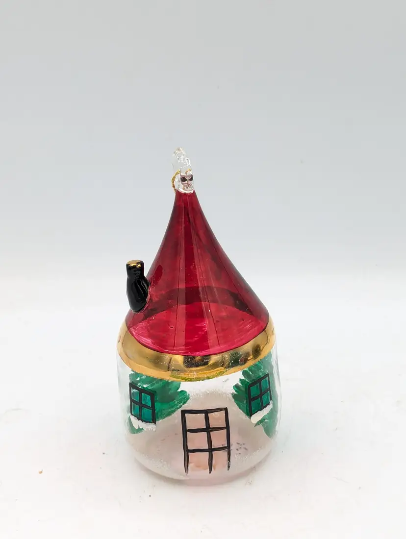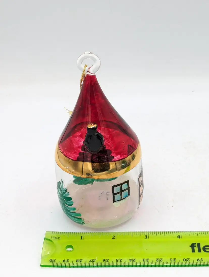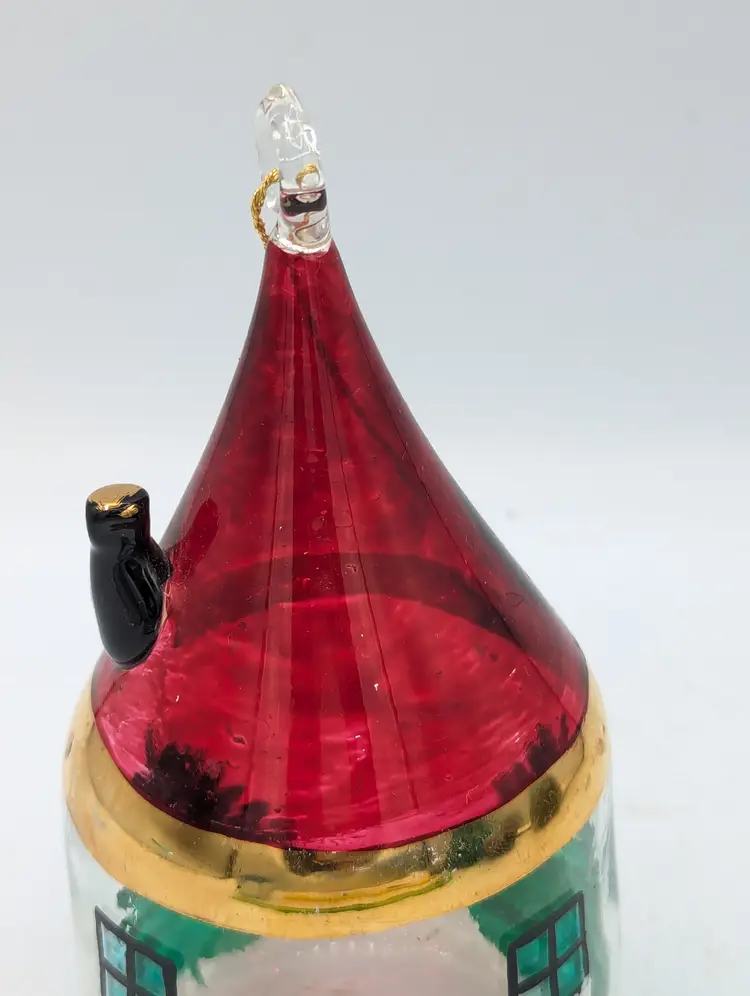 Vietri Santa's House Shaped Glass Christmas Ornament Vintage Italy Golden Accents.